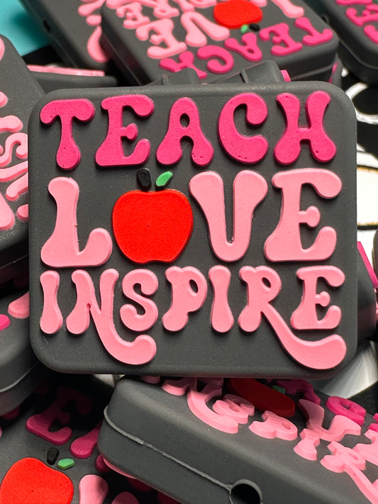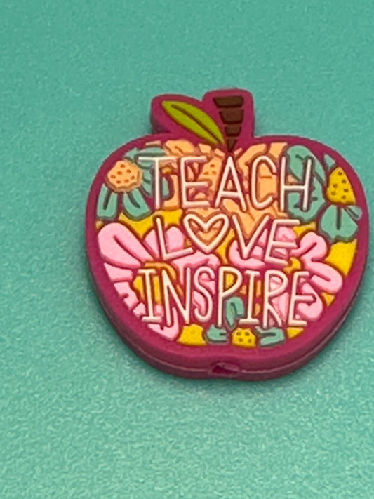 Teach Love Inspire Apple School Teacher Focal Bead/ beadable pen/ Silicone bead/ keychain bead/ teach