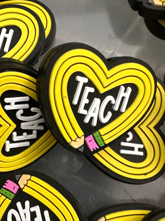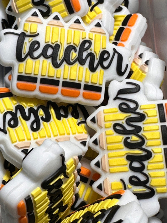 Teacher /Teaching heart Focal Bead/ beadable pen/ Silicone bead/ keychain bead/ pencils