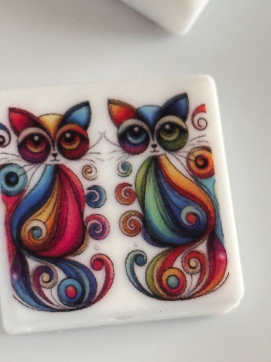 Colorful Cat Focal Bead/ beadable pen/ Silicone bead/ animal/ keychain bead/ kitty/ abstract art