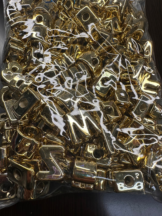 Gold Metallic Plastic Letter Beads – Bulk Bag of Mixed A–Z Alphabet Beads (Vertical Hole) over 150 bead alphabet -