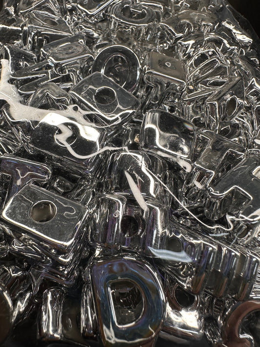 Silver Metallic Plastic Letter Beads – Bulk Bag of Mixed A–Z Alphabet Beads (Vertical Hole) over 150 bead alphabet -