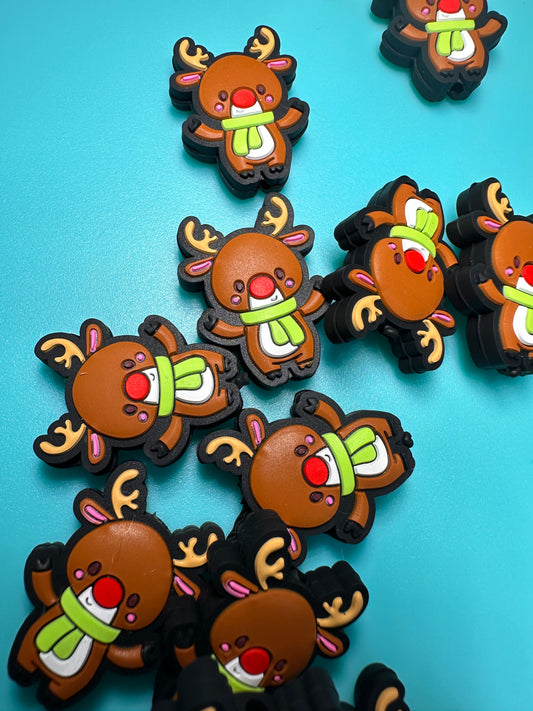Reindeer Christmas/ Holiday/ Focal Bead/ beadable pen/ Silicone bead/ keychain bead/ Christmas/ red nose reindeer