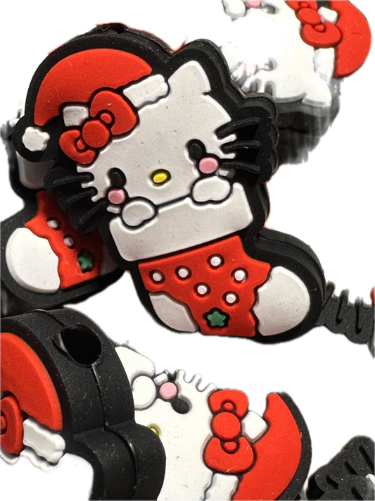 Christmas Cat Focal Bead/ beadable pen/ Silicone bead/ keychain bead/stocking