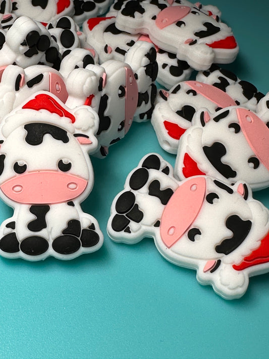 Christmas Black and white cows / Focal Bead/ beadable pen/ Silicone bead/ keychain bead/ animal/ farm/ Santa hat