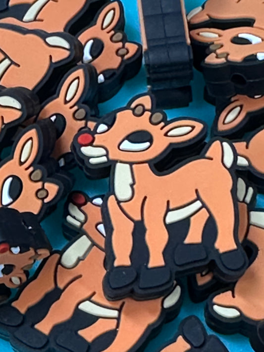 Reindeer Christmas/ Holiday/ Focal Bead/ beadable pen/ Silicone bead/ keychain bead/ Christmas/ red nose reindeer