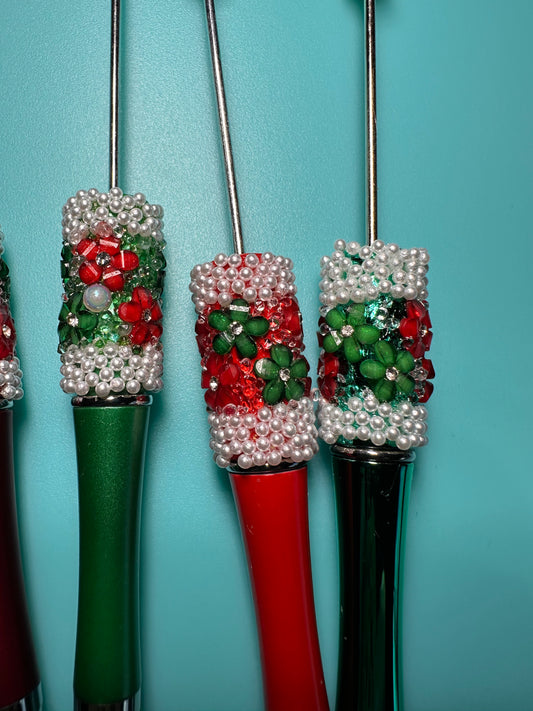 Christmas designs beadable pens/ fancy pens/ custom poinsettias pens/