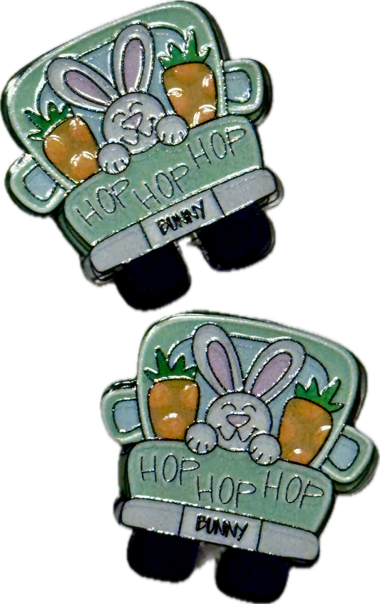 Easter bunny in truck acrylic focal bead- set of 2/ focal bead/pink double c/ pen beading / keychain bead