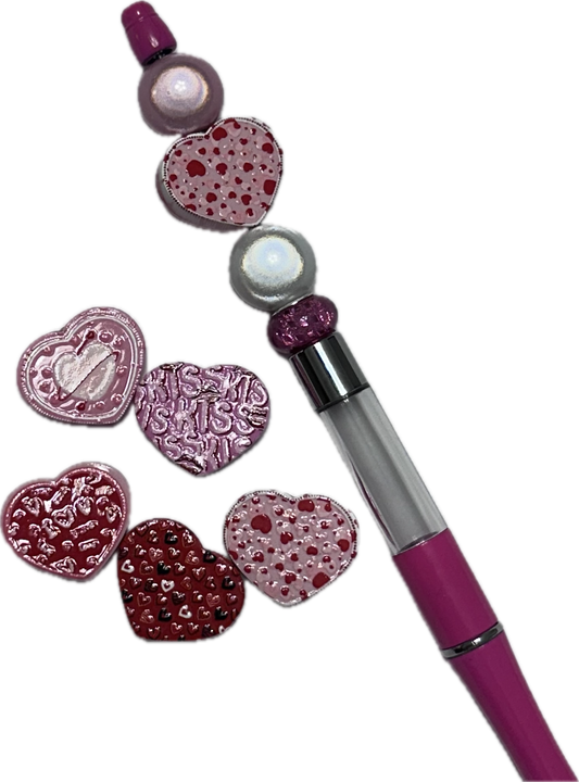 Heart shaped acrylic focal bead- set of 2/ focal bead/pink double c/ pen beading / keychain bead/ Valentines bead