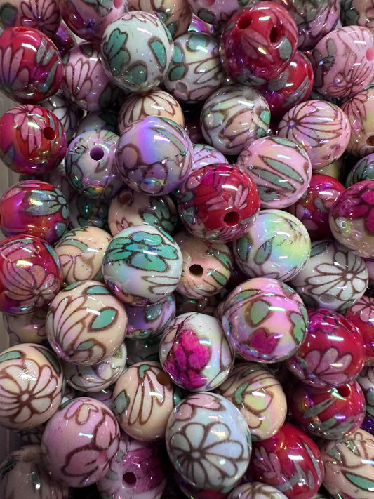 16mm Floral Acrylic Beads – Set of 10