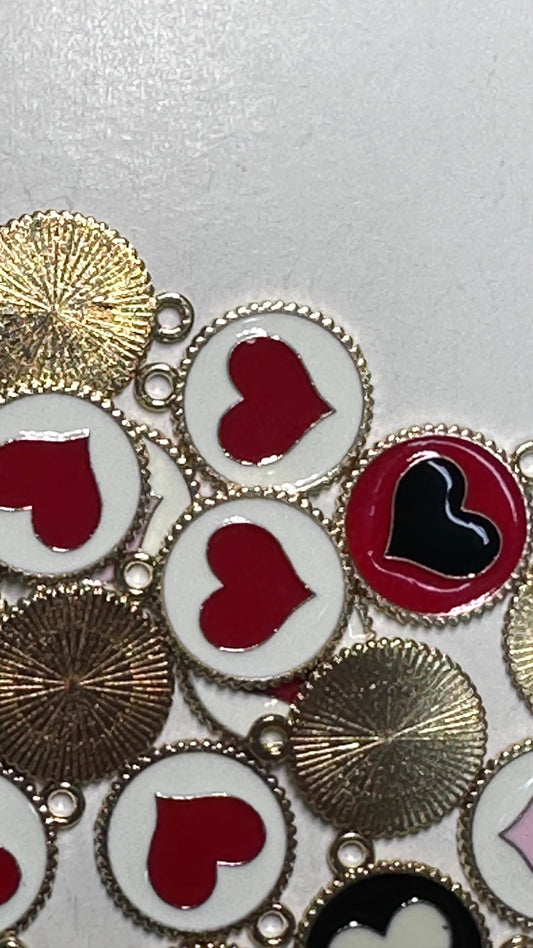 Round charms with hearts in the middle enamel metal charms/ DIY charm bracelet/ DIY necklace/ mixed colors randomly chosen