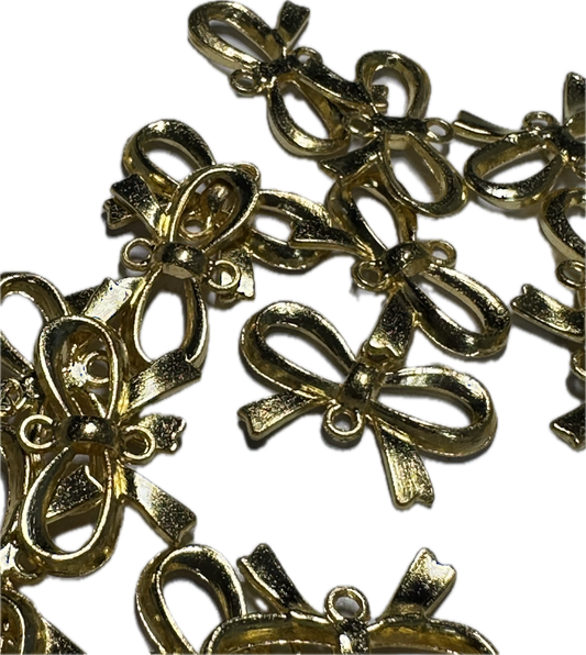 Gold bow with bottom loop for dangles metal charms/ DIY charm bracelet/ DIY necklace/