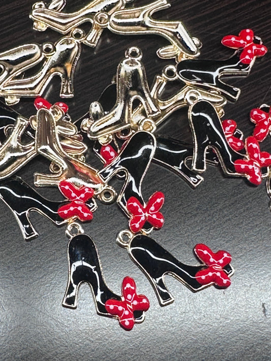 Black high heel with red bow enamel metal charms/ DIY charm bracelet/ DIY necklace