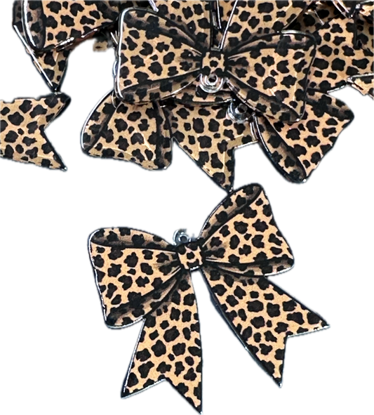Cute Leopard Print Bow Acrylic Pendants – Cute Bow Charms for DIY Crafts (Set of 5)