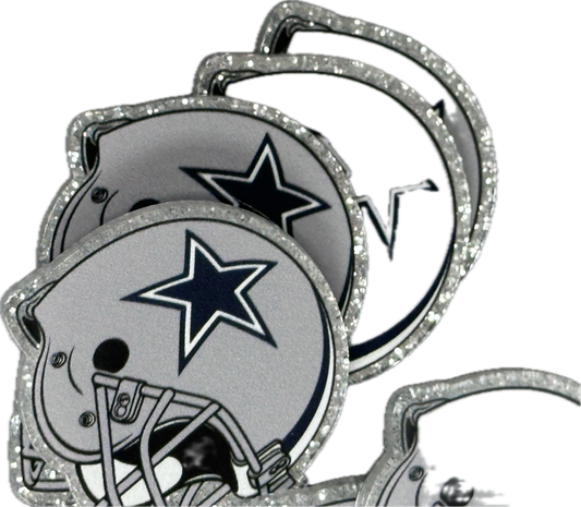 Planar Dallas Cowboys football helmet with a star on it -set of two (2) Badge Reel acrylic pieces/badge reel/ DIY keychain/ blue and grey/ approx. 3 inch