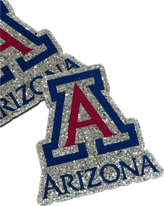 University of Arizona -set of two (2) Badge Reel acrylic pieces/ DIY keychain/ blue and red A with sparkle / approx. 3 inch circle