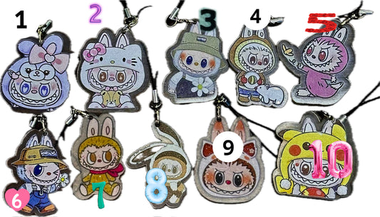 Labubu monster acrylic pendants/ Five (5) pendants included / keychain DIY/