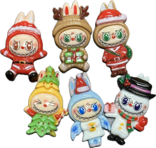 Labubu Christmas flat back charms/ Six different charms included /acrylic pieces perfect for DIY phone cases