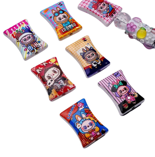Labubu monster acrylic beads/ Ten (10) beads included assorted styles / rectangle shaped beads/ pen beading beads / keychain beads/ DIY/ 34mm x 25mm