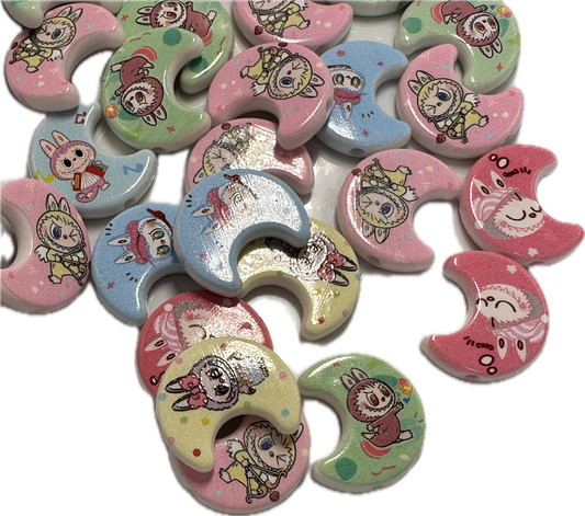 Labubu monster acrylic beads/ Ten (10) beads included assorted styles / moon shaped beads/ pen beading beads / keychain beads/ DIY/approx. 25mm