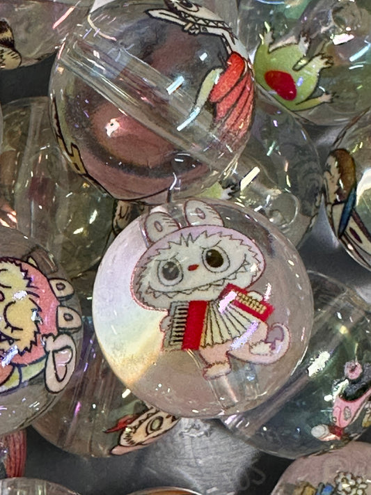 Labubu monster beads/ Ten (10) beads included assorted styles /Clear acrylic round beads/ will fit pen / keychain beads/ DIY/approx. 20 mm