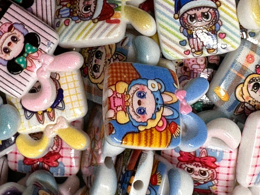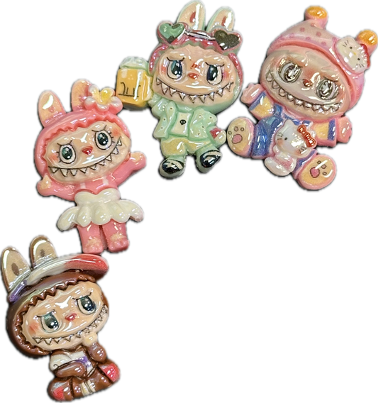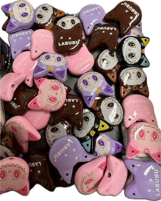 Labubu monster acrylic beads/ Ten (10) beads included assorted styles / flat backed beads/ will fit pen beading beads / keychain beads/ DIY/approx. 22mm x 25mm