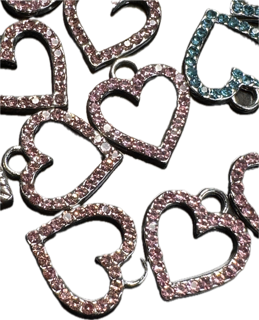Rhinestone enamel metal charms/ DIY charm bracelet/ DIY necklace blue and pink hearts