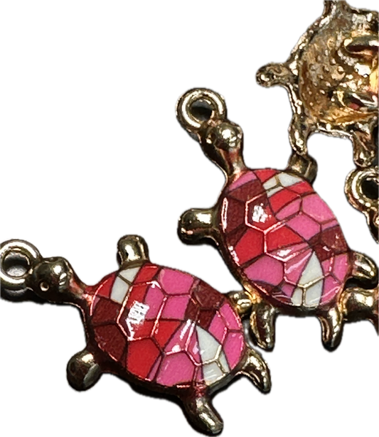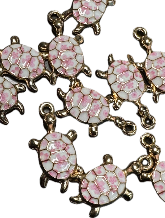 Pink mosaic enameled metal turtle charms/ DIY-earrings,necklace,charm bracelet/ sea turtle