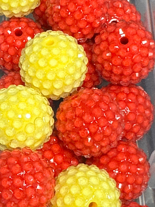 Rhinestone Bead/Set of ten beads-Five beads each color included/ perfect to go with Kansas Football DIY /fits beadable pen/ Fancy bead/ keychain bead/ red and yellow/ 20mm
