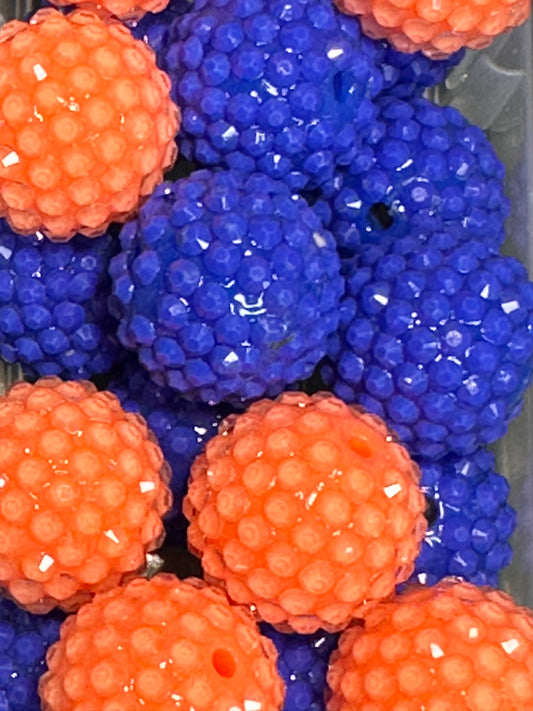 Rhinestone Bead/Set of ten beads-Five beads each color included/ perfect to go with Florida Gators and University of Auburn /fits beadable pen/ Fancy bead/ keychain bead/ dark blue and orange/ 20mm