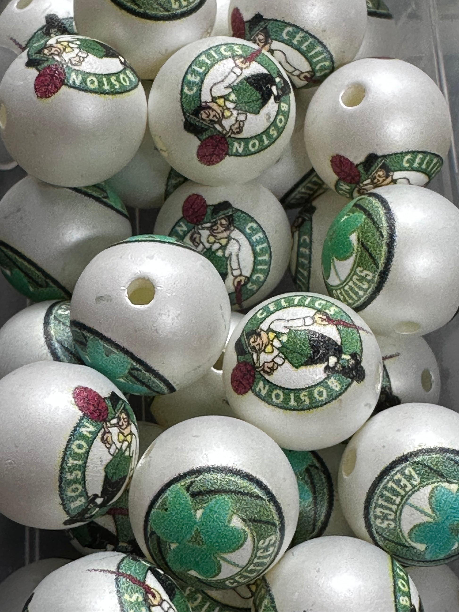 16mm Sports Print Beads • Set of 10 • Great for Pens, Keychains & Crafts- Boston Celtics