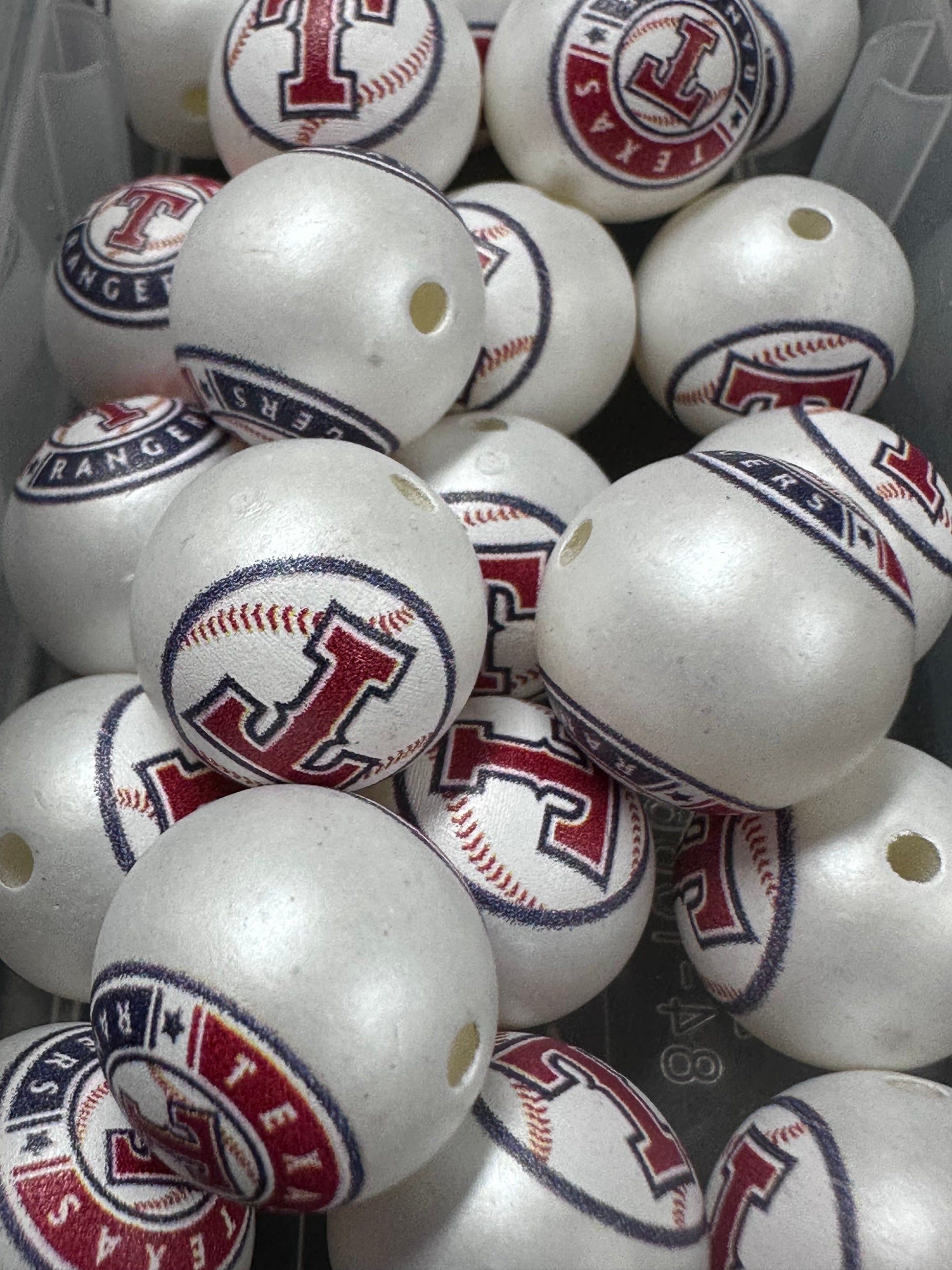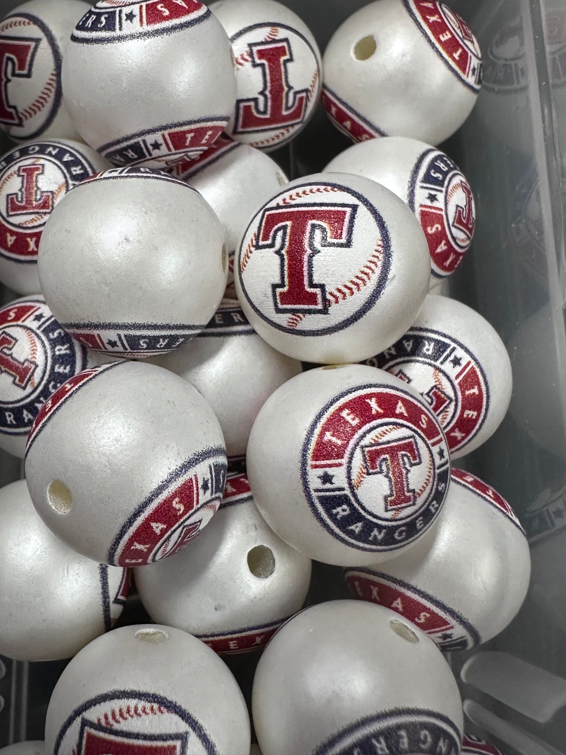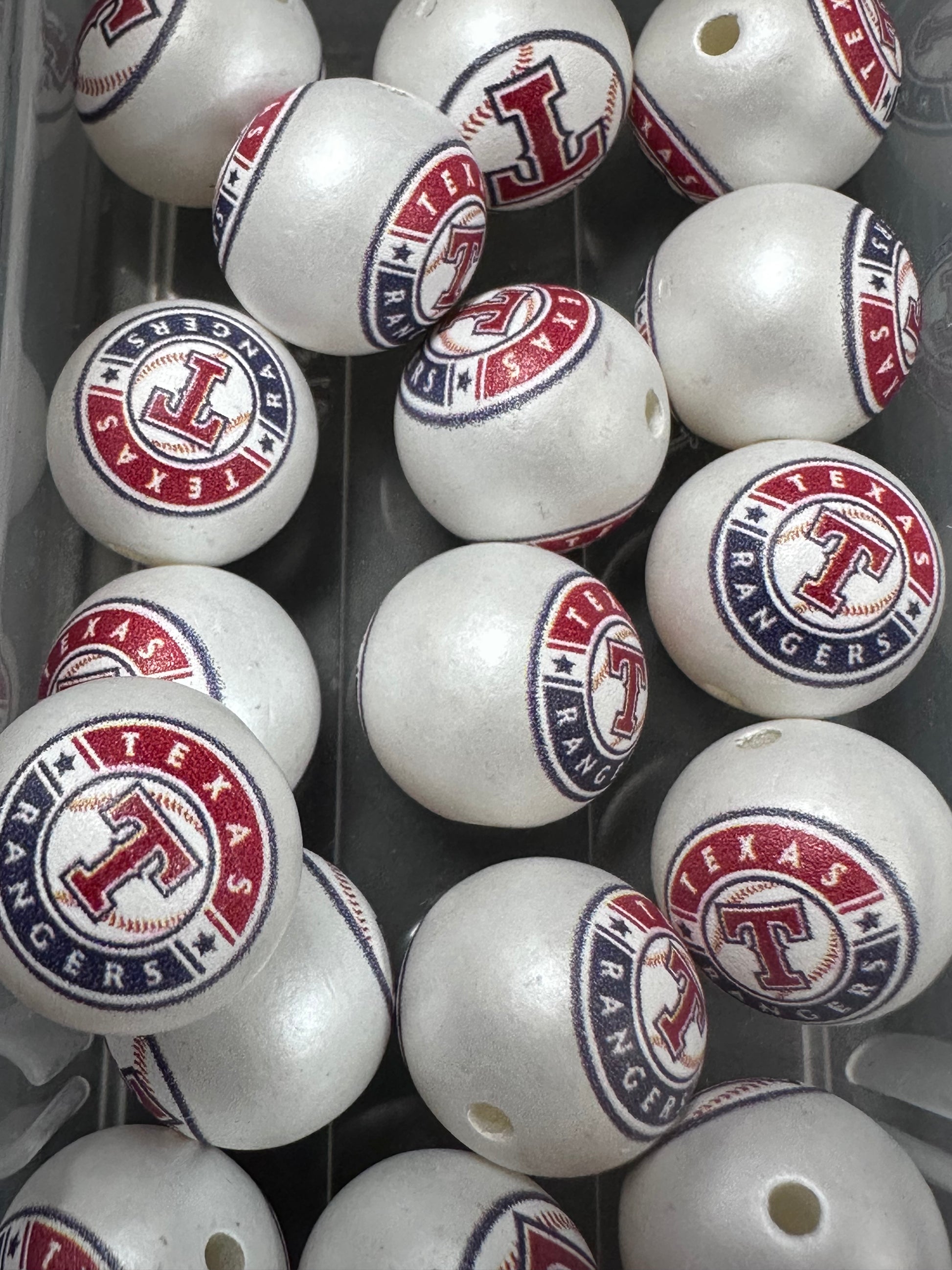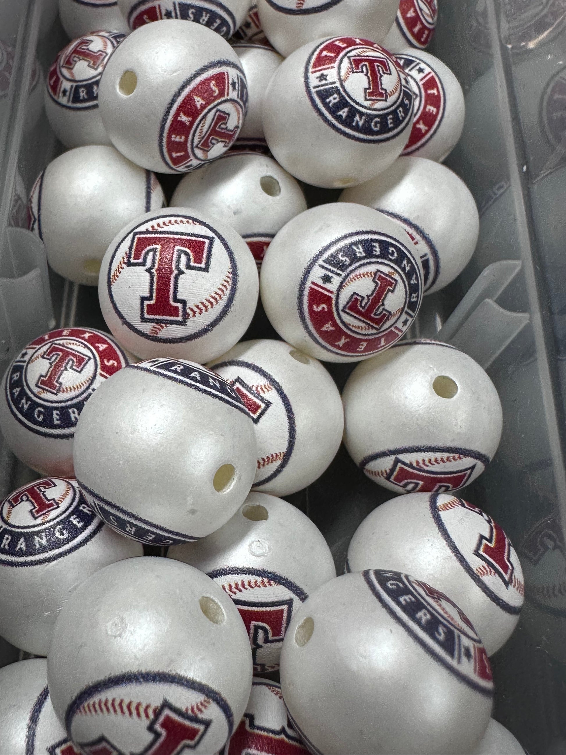 Texas Rangers 16mm Sports Print Beads • Set of 10 • Great for Pens, Keychains & Crafts-