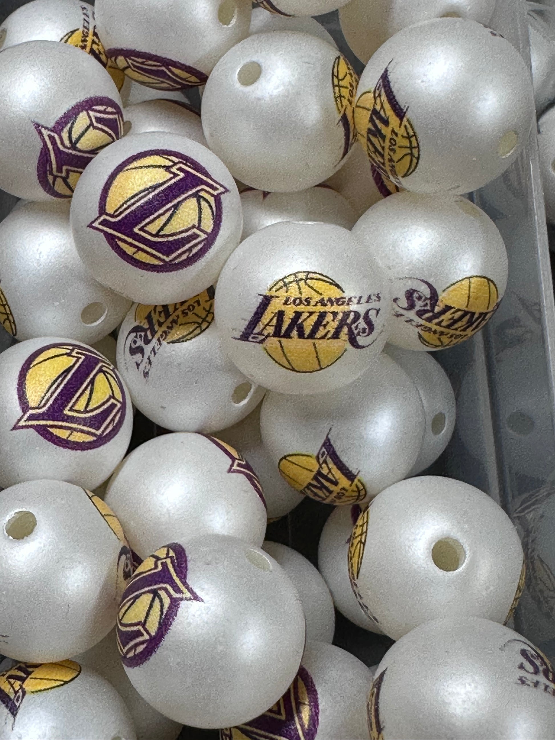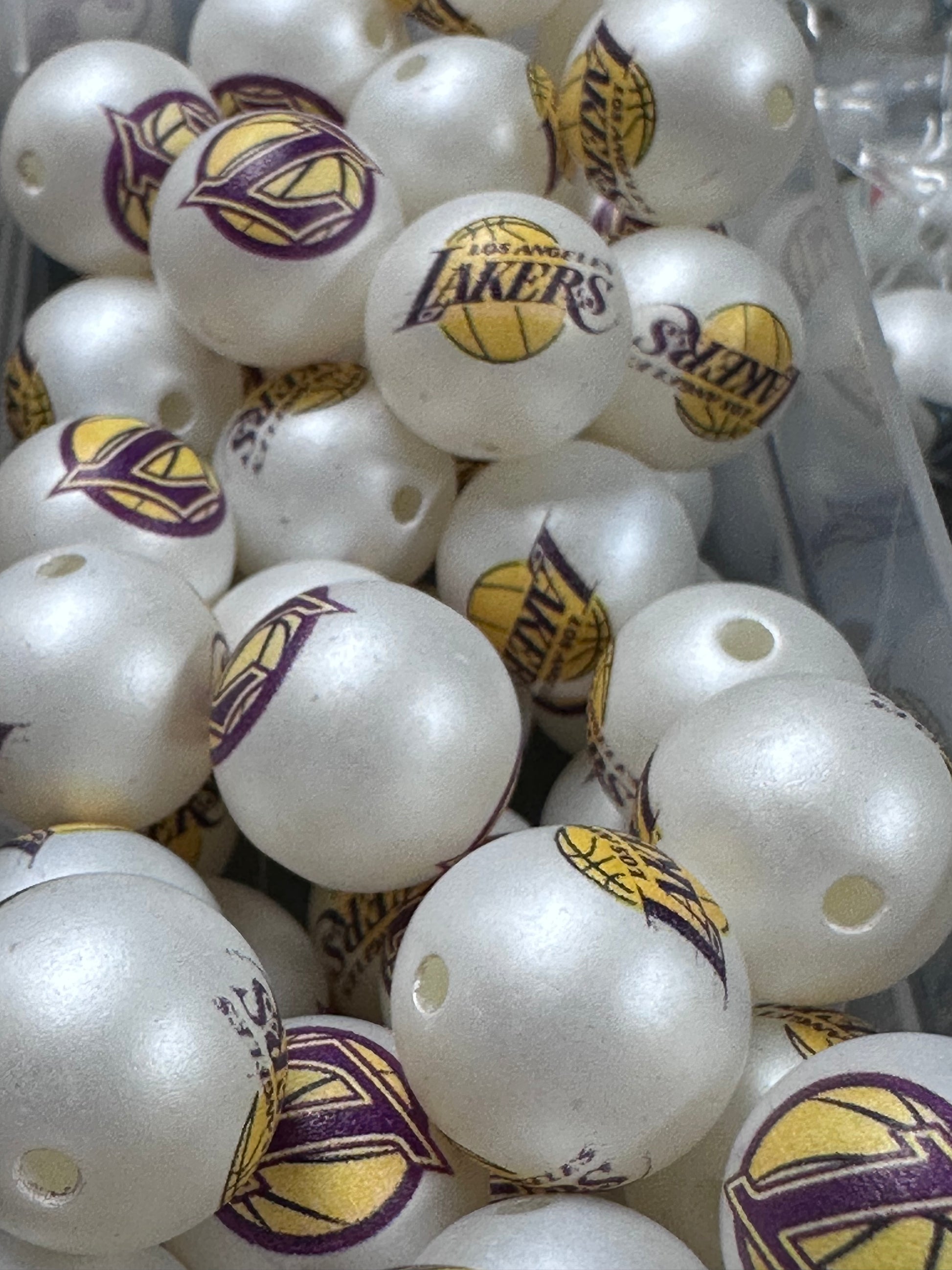 LA Lakers16mm Sports Print Beads • Set of 10 • Great for Pens, Keychains & Crafts- basketball