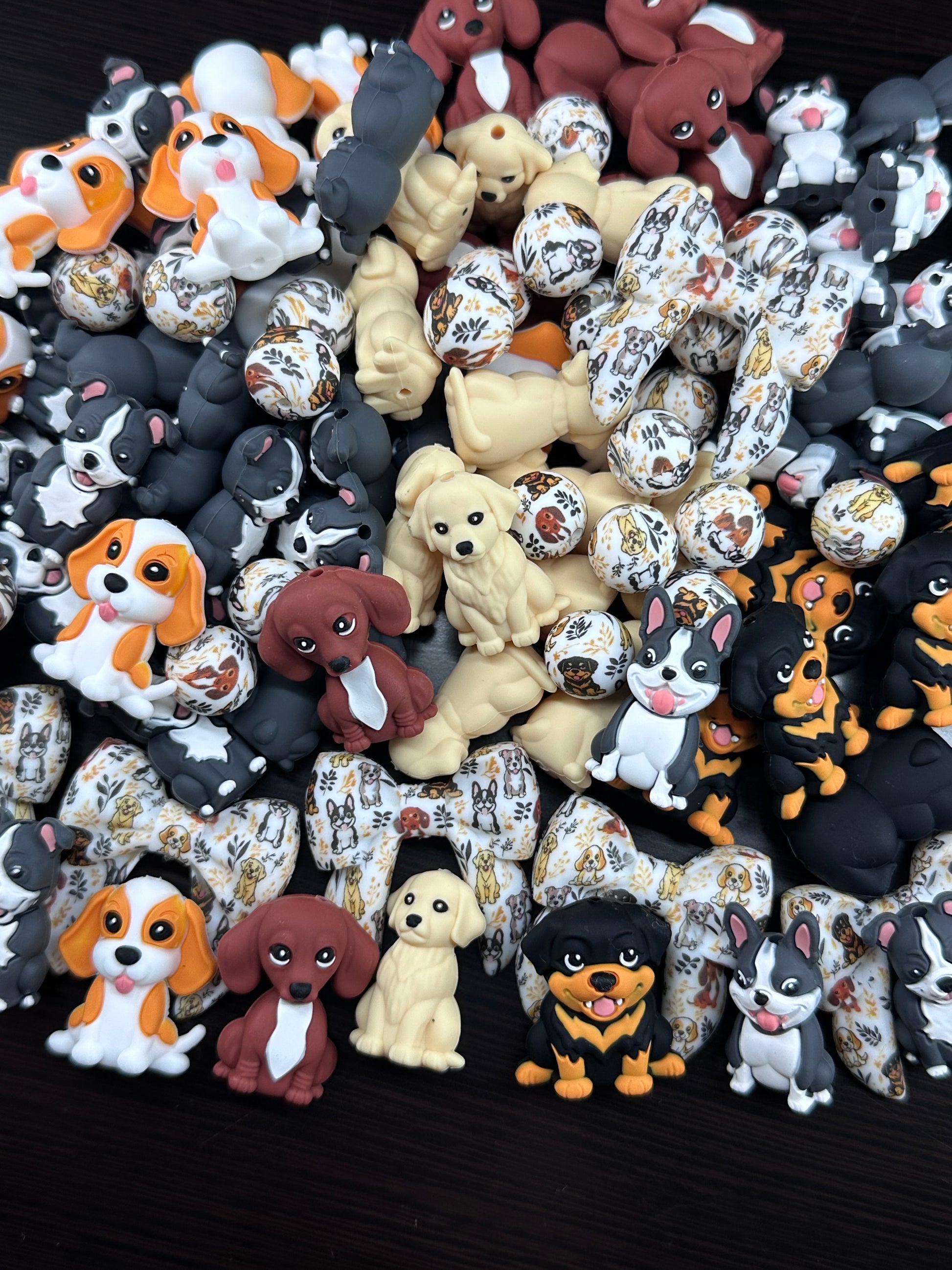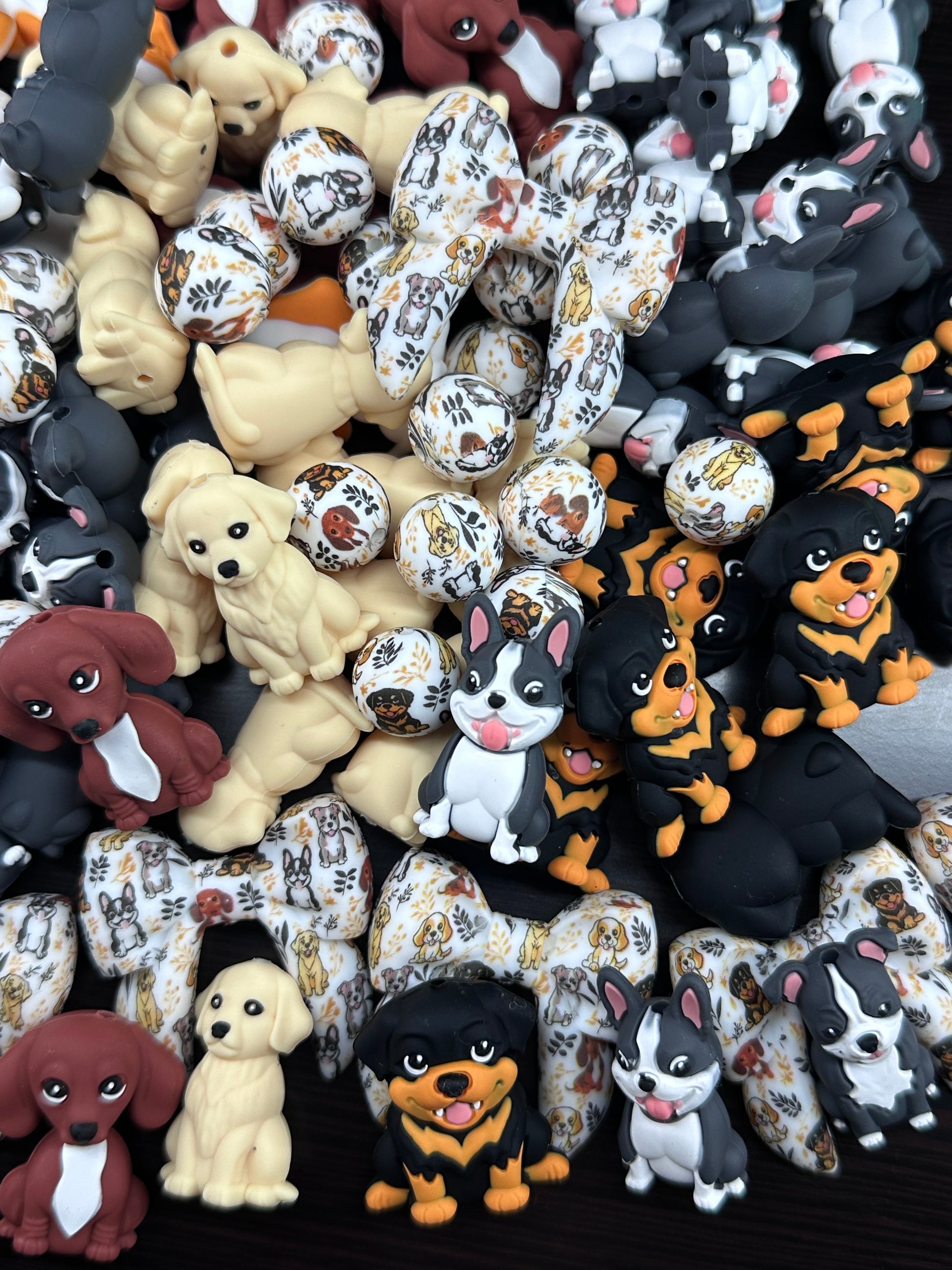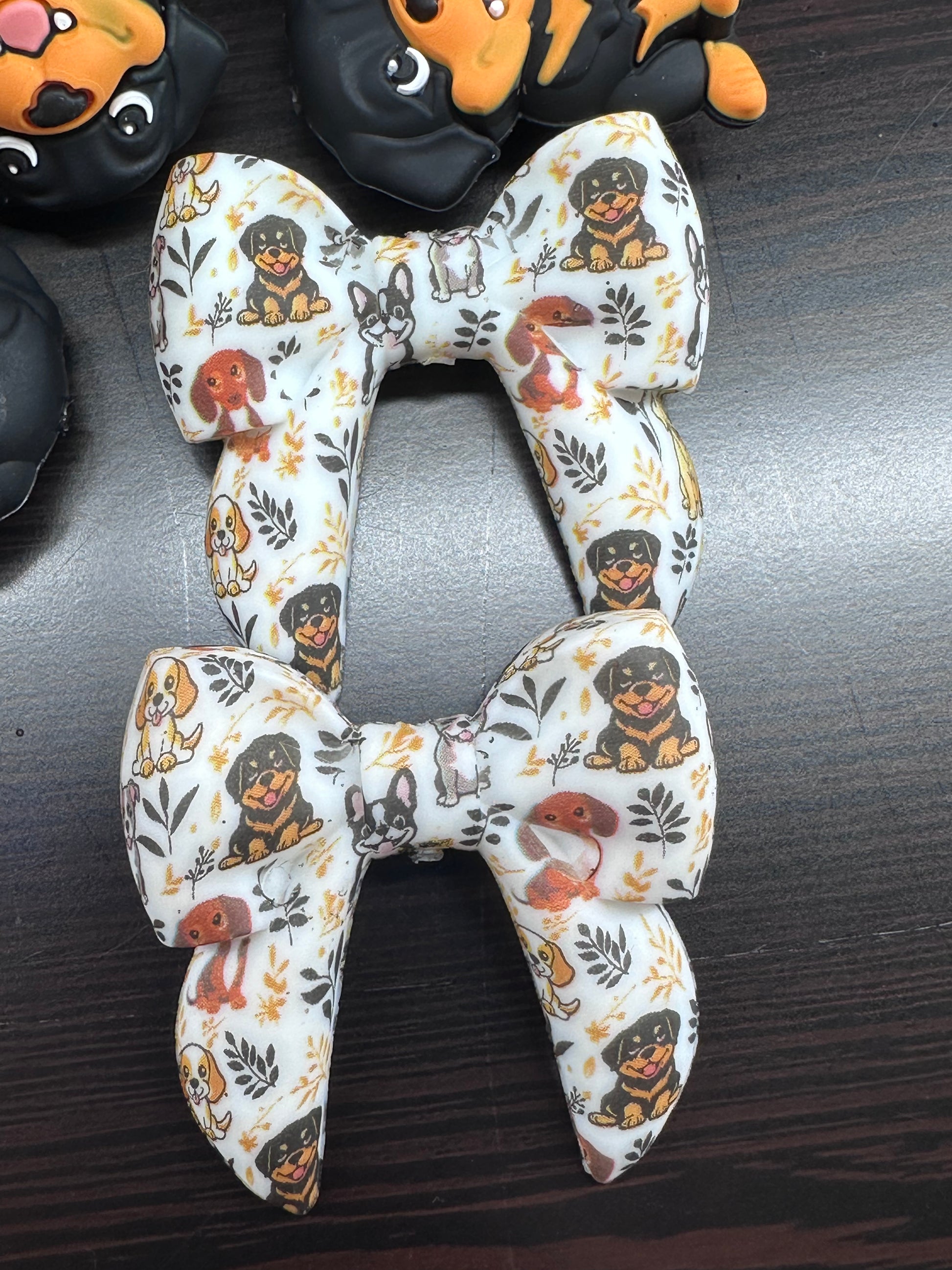 7. Printed Dog Bow Bead â Paw & Dog Pattern Classic bow shaped silicone bead featuring an all-over paw print and dog design.