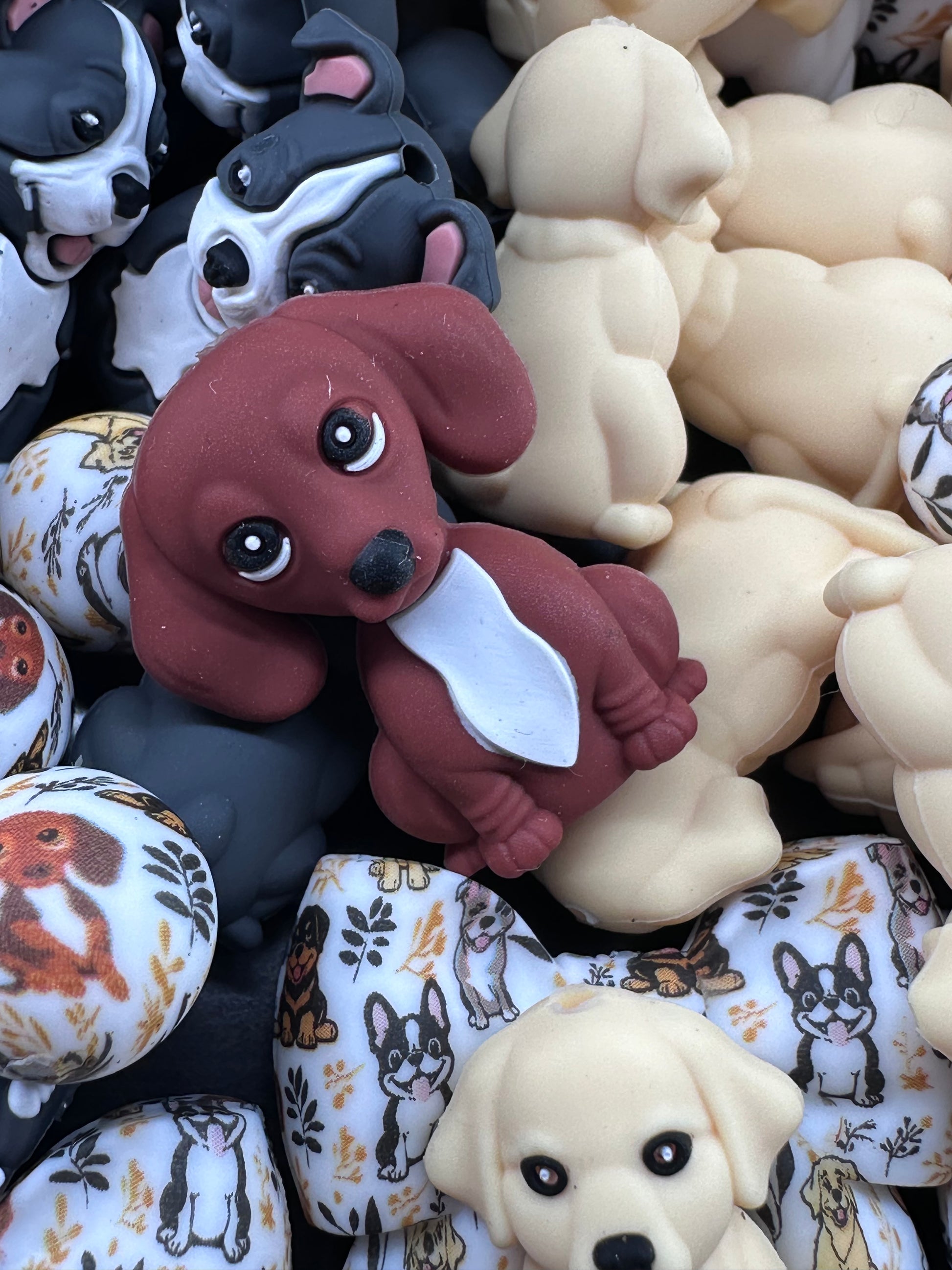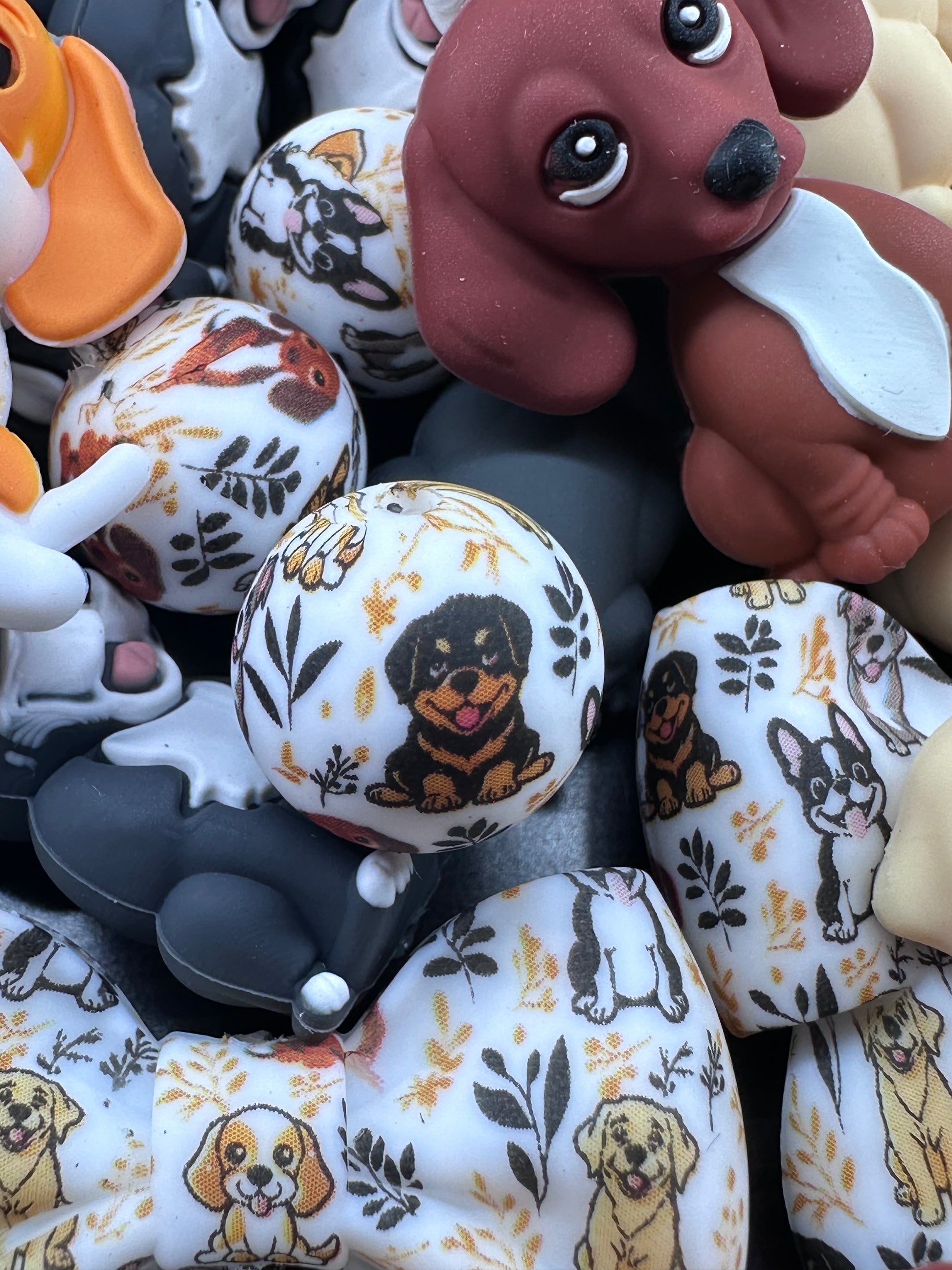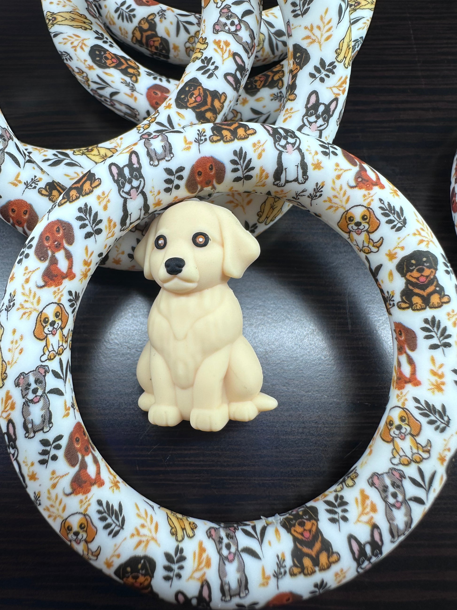 3D Dog silicone focal beads Golden Retriever, Pit Bull, Beagle, Rottweiler, Coon Hound, Frenchie - matching hoop and round beads