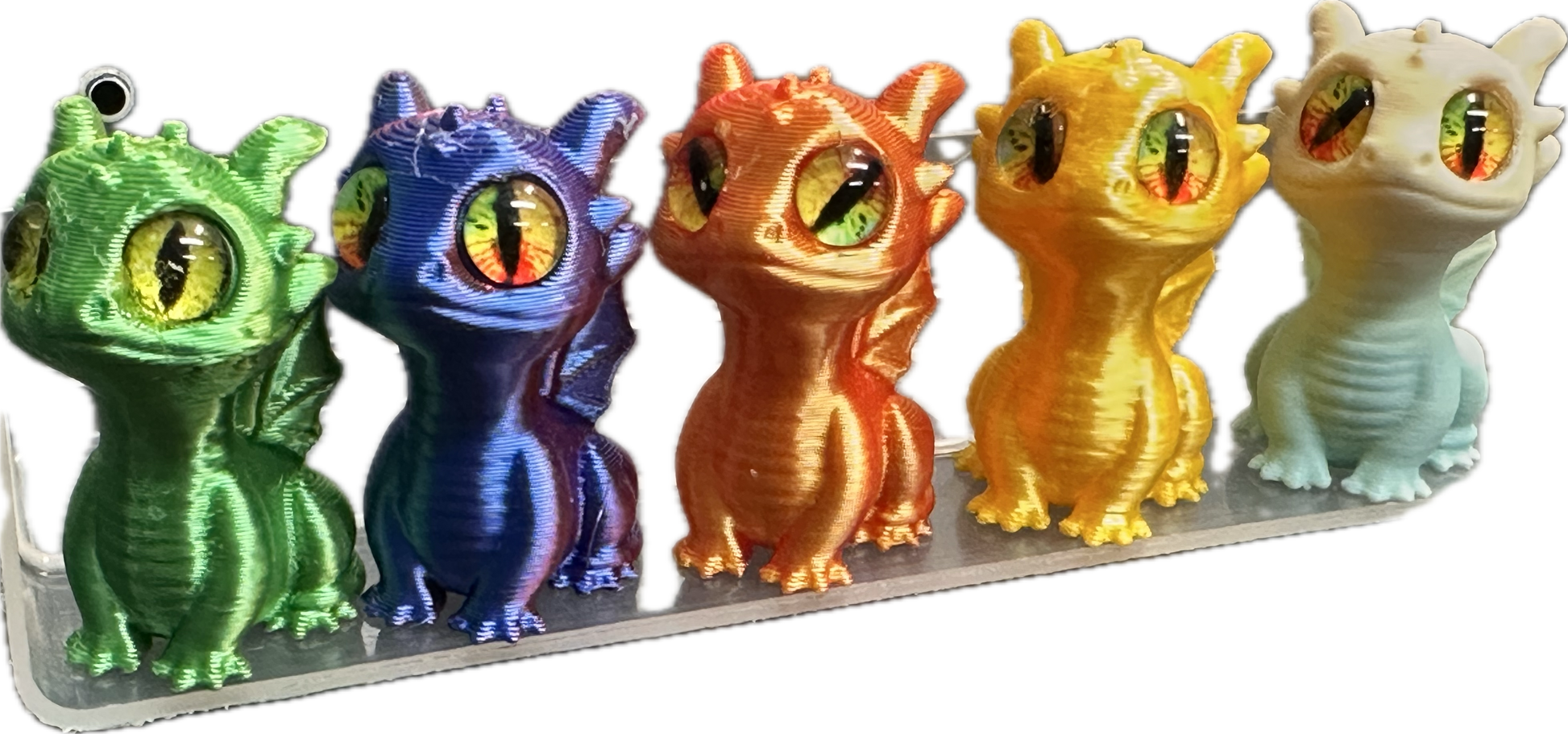 These adorable mini dragon figurine beads feature vivid detailing and glossy, metallic finishes that make them truly eye-catching. Each dragon has shimmering scales, tiny horns, and cute little wings on its back, giving it a whimsical fantasy vibe. Their large, glossy cat-like eyes shift with color — green, gold, and fiery orange tones — giving them a lifelike, magical stare.