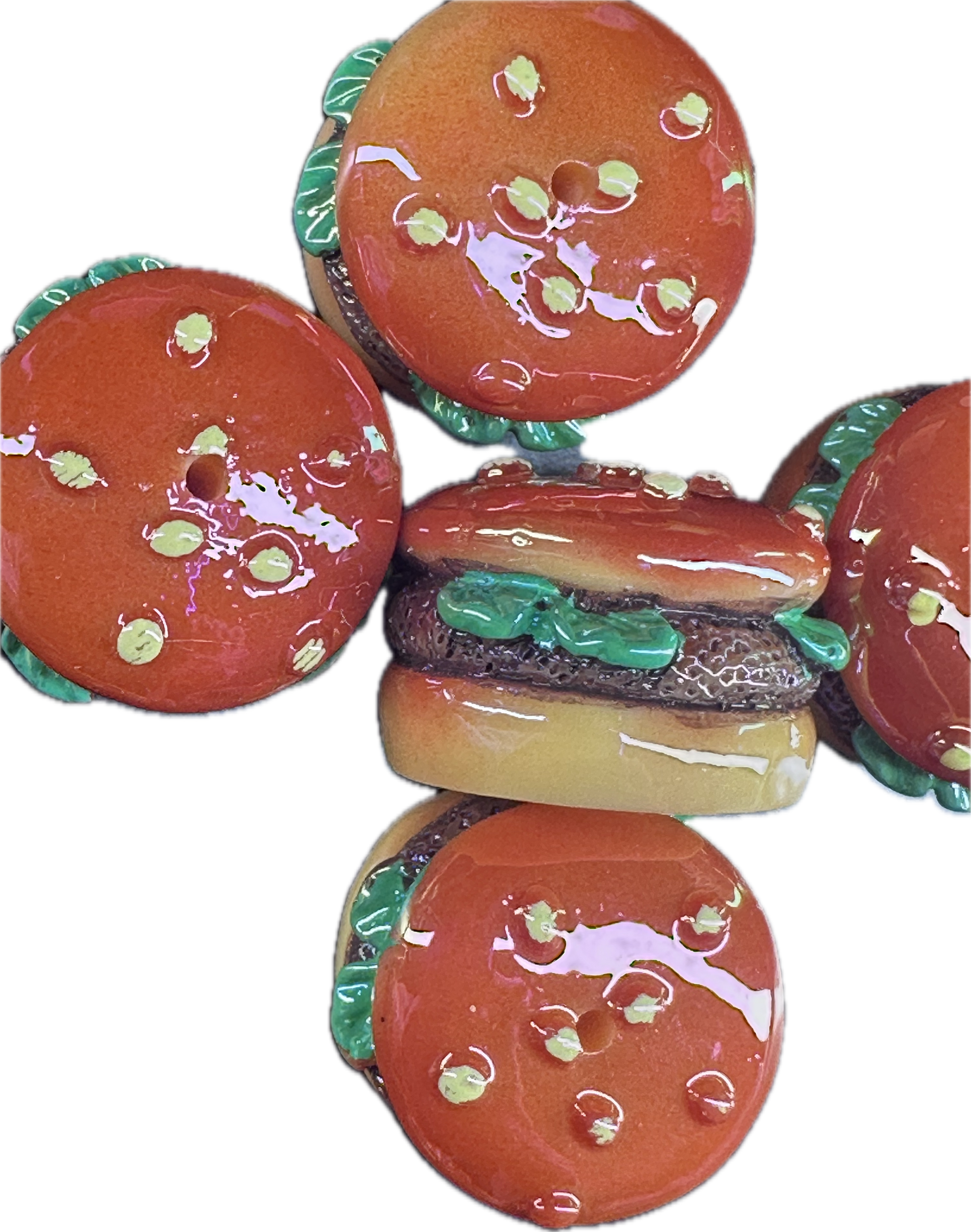 3D hamburger acrylic bead/ beadable pen/ replica burger bead/ keychain bead/hamburger/food/set of 2