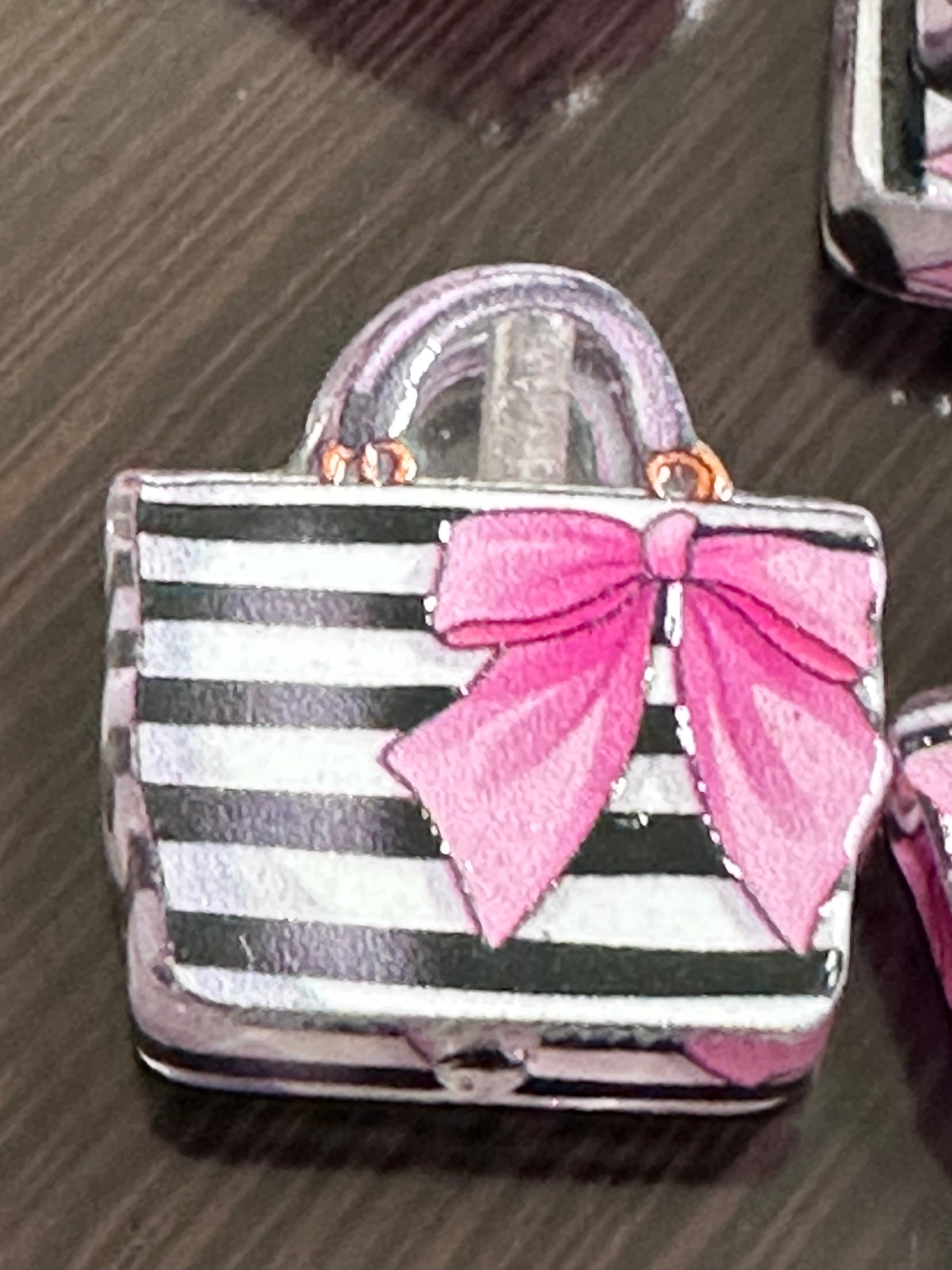 Striped purse acrylic focal bead- set of 2/ focal bead/ pen beading / keychain bead/pink bow