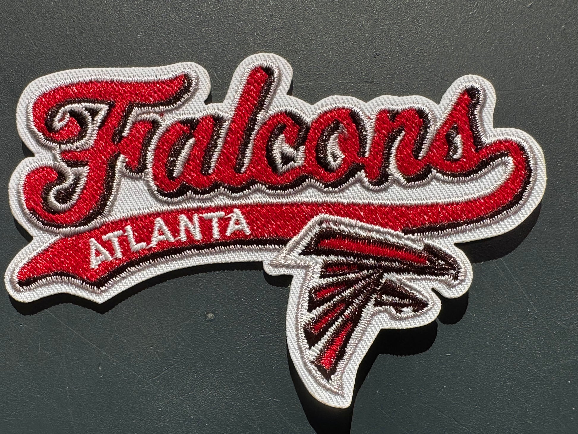ATLANTA FALCONS EMBROIDERED IRON ON PATCH/ SIZE APPROX 4" x 2"/ QUALITY MATERIAL/FABRIC PATCHES/FOOTBALL TEAM