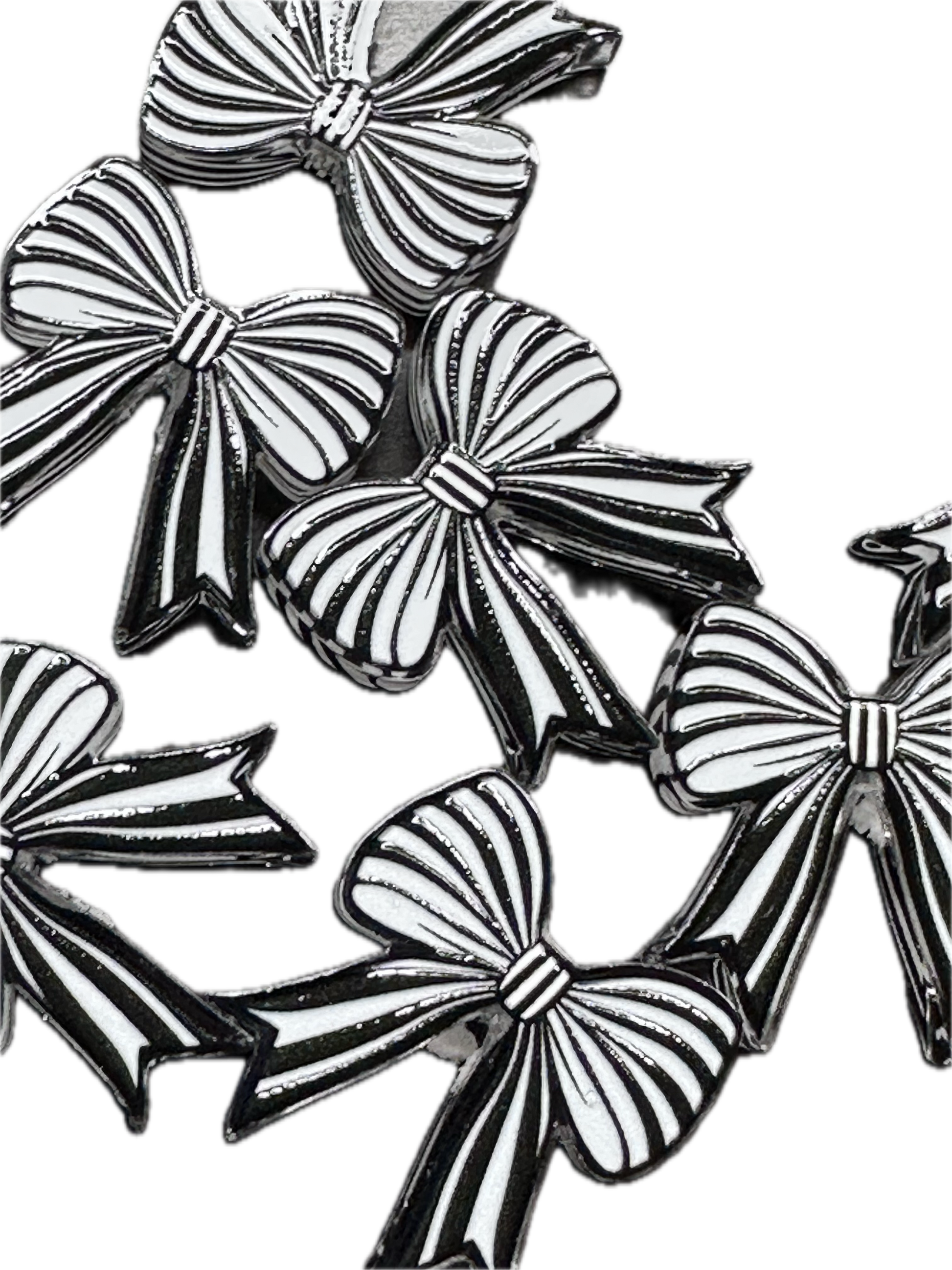 Black and white striped bow acrylic focal bead- set of 2/ focal bead/ pen beading / keychain bead/