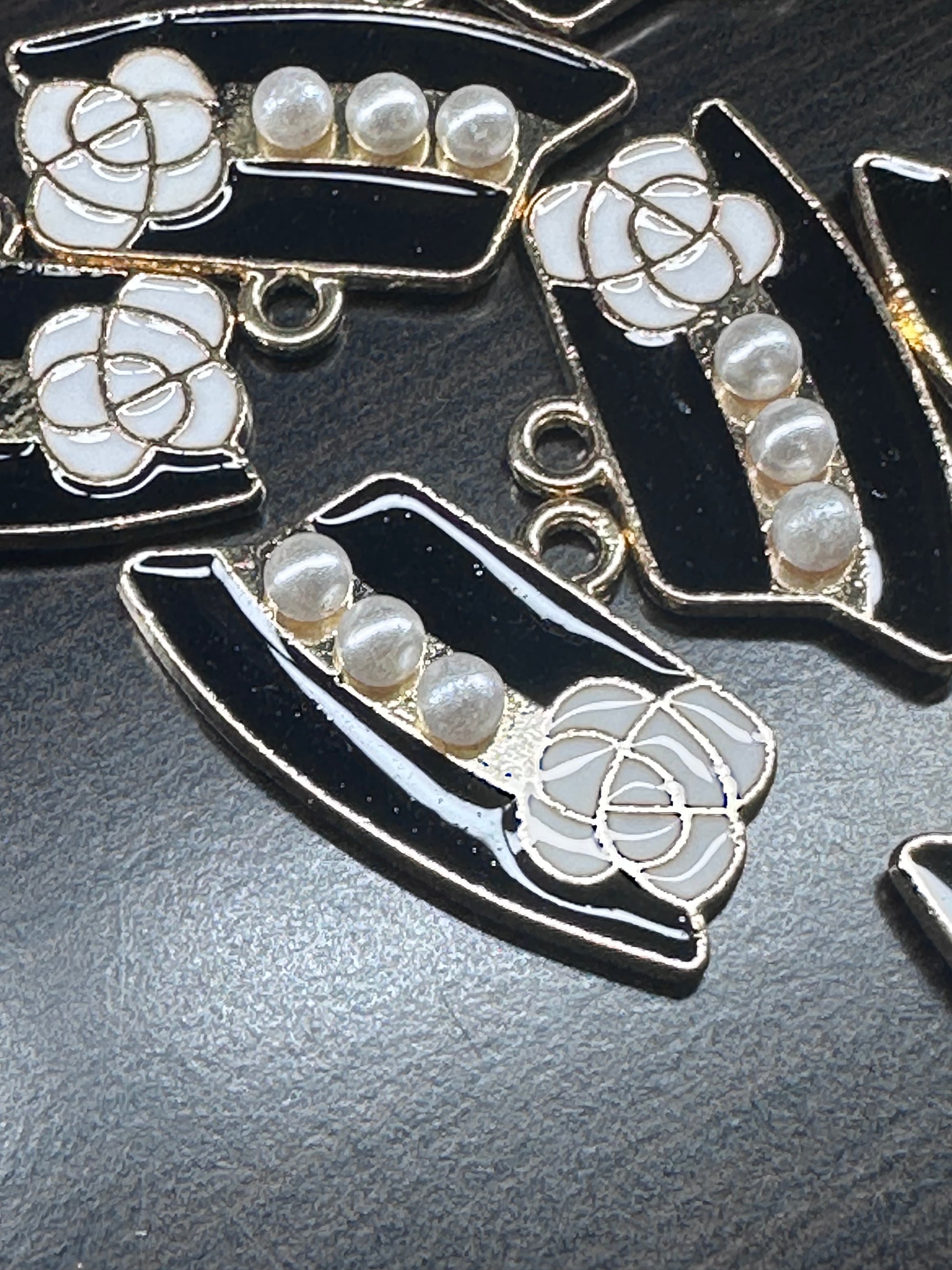 Black Hat with Pearl accents enamel metal charms// DIY charm bracelet/ DIY necklace