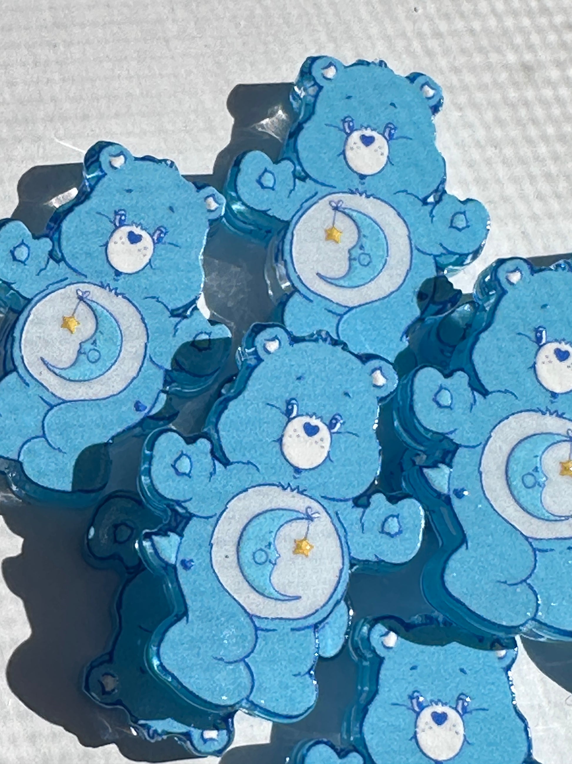 Blue bear with moon acrylic focal bead- set of 2/ focal bead/ pen beading / keychain bead