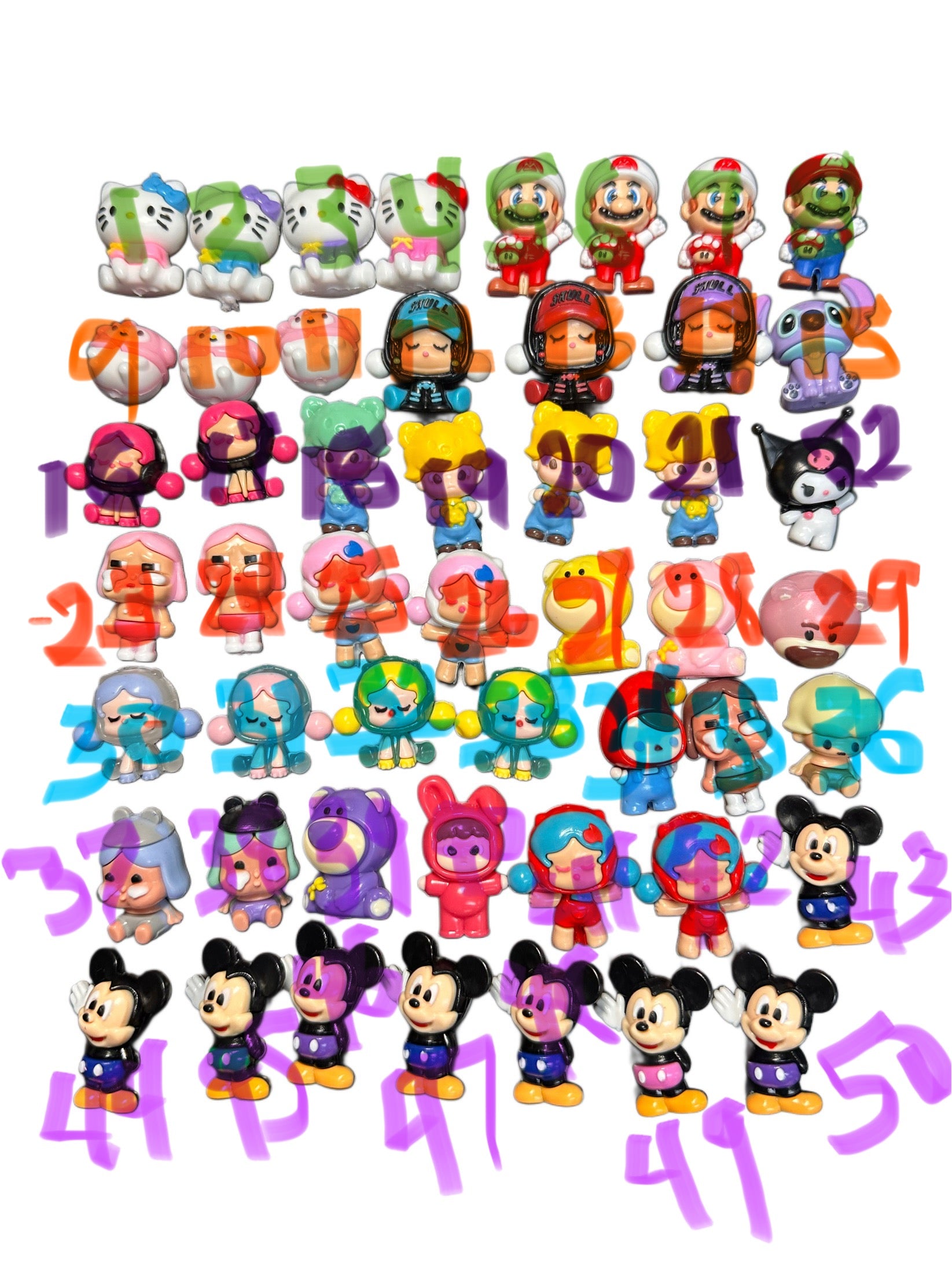 These fun collectible rubber beads feature a variety of beloved characters and playful designs. Each bead is crafted in a mini-figure style with bright colors and glossy finishes, making them perfect for DIY projects, jewelry, keychains, or charm accessories.