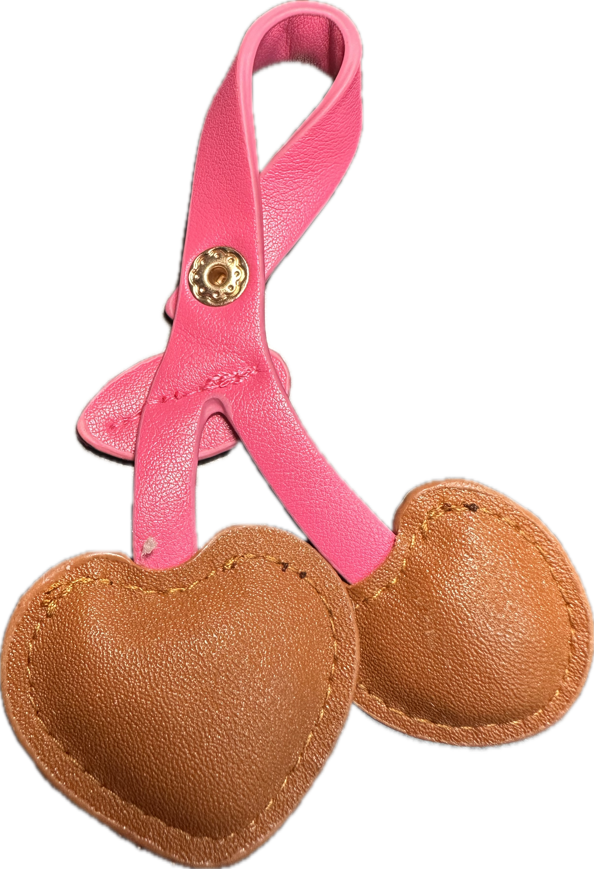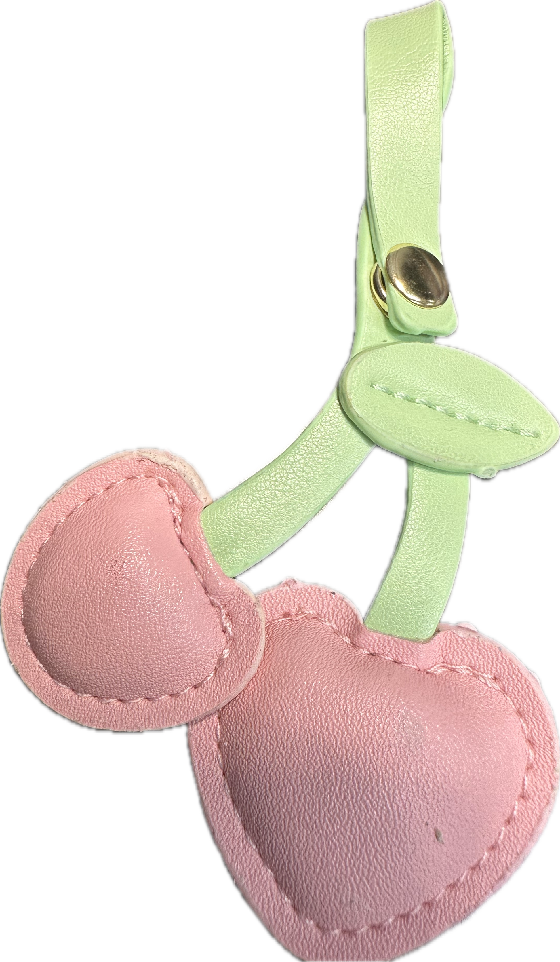 Add a pop of fun to your accessories with these adorable cherry-style heart charms. Each piece is made from soft faux leather, featuring two puffy stitched hearts attached to leafy stems with a snap button loop for easy attachment. Available in a variety of colors, these charms are perfect for brightening up bags, keys, or DIY projects.