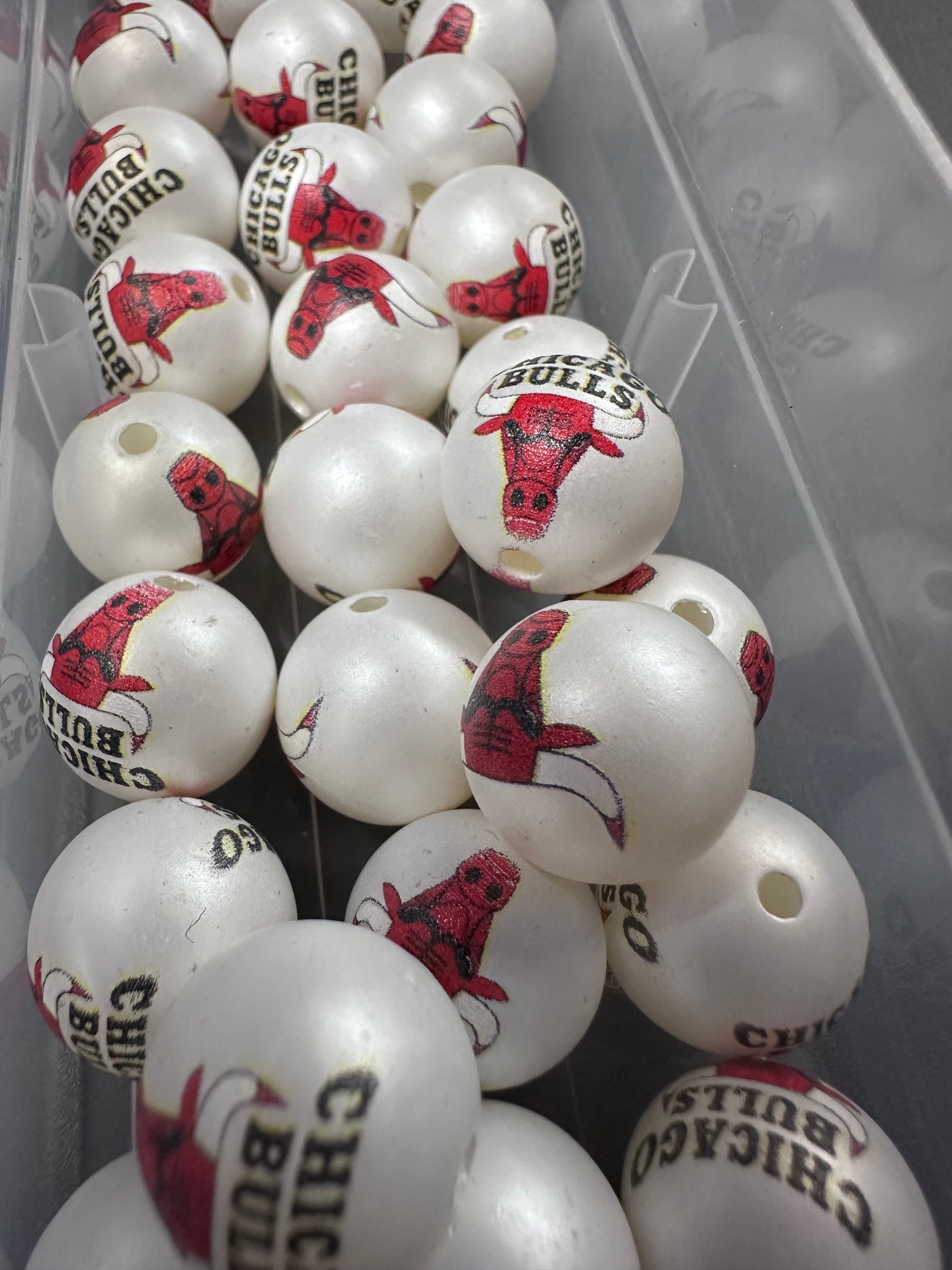 Chicago Bulls Sports 16mm Sports Print Beads • Set of 10 • Great for Pens, Keychains & Crafts-