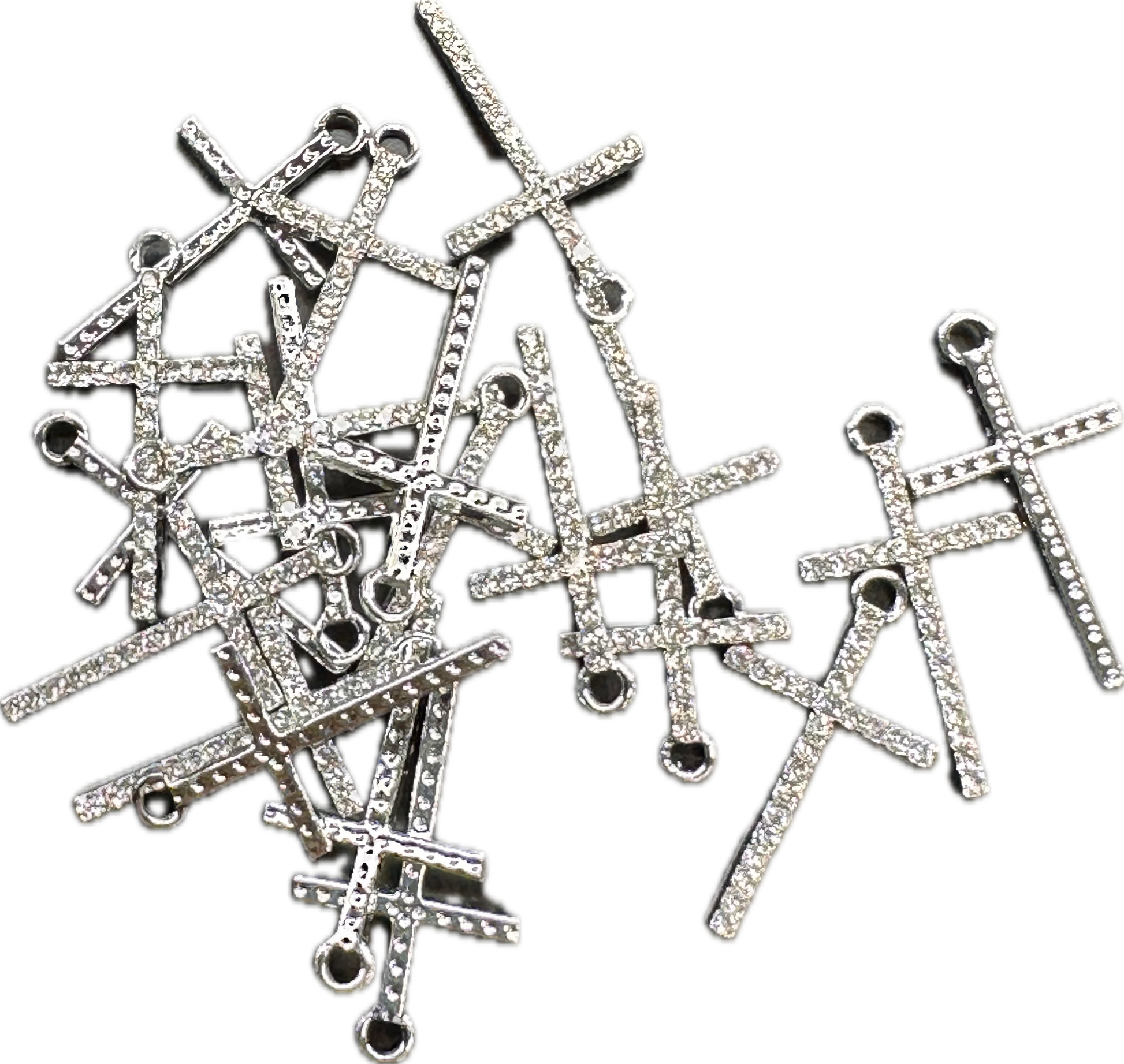 Add sparkle and shine to your jewelry or craft projects with these stunning rhinestone cross charms! ✝️ Each charm features shimmering clear crystals set in a silver-tone metal base, designed with double loops for easy connecting. Perfect for bracelets, necklaces, keychains, beaded pens, and DIY creations.