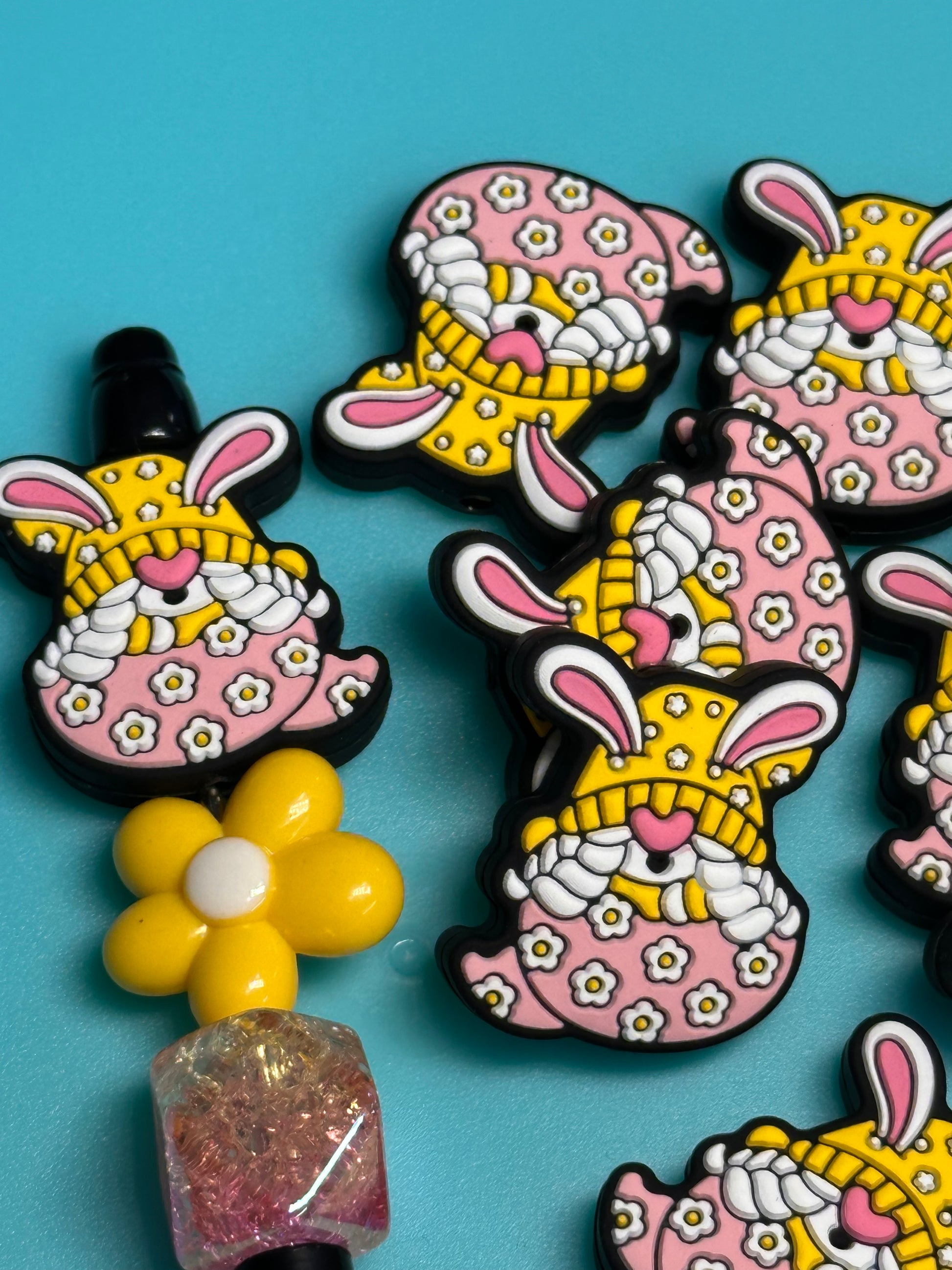 Easter bunny gnome focal bead/ silicone bead/ pen beading/ DIY/ Easter egg/ bunny ears gnome
