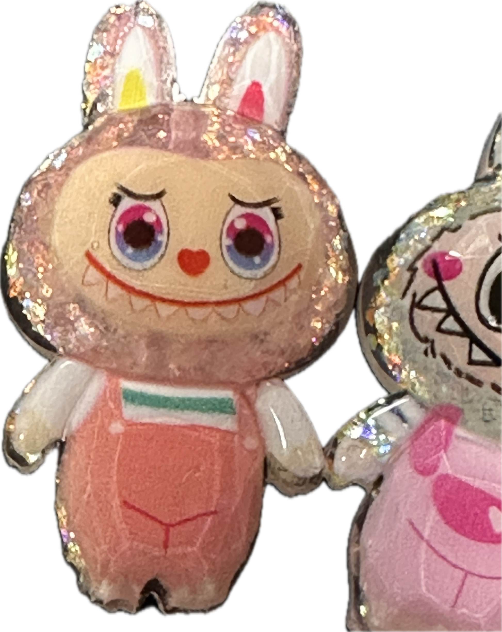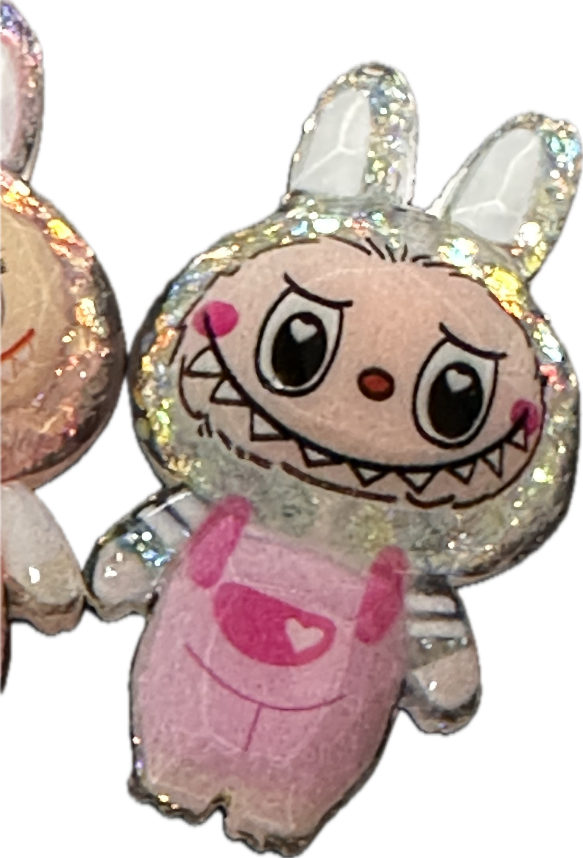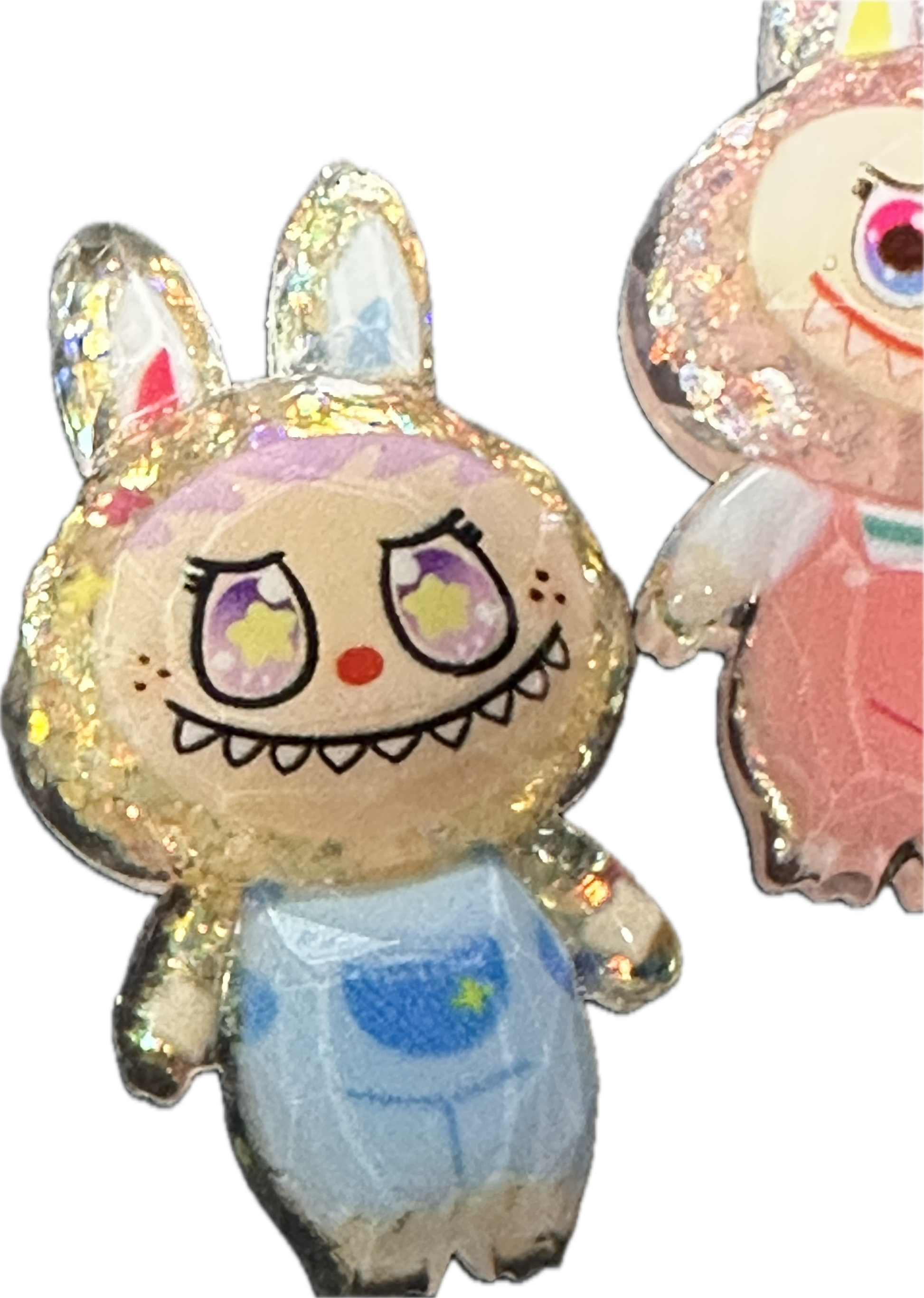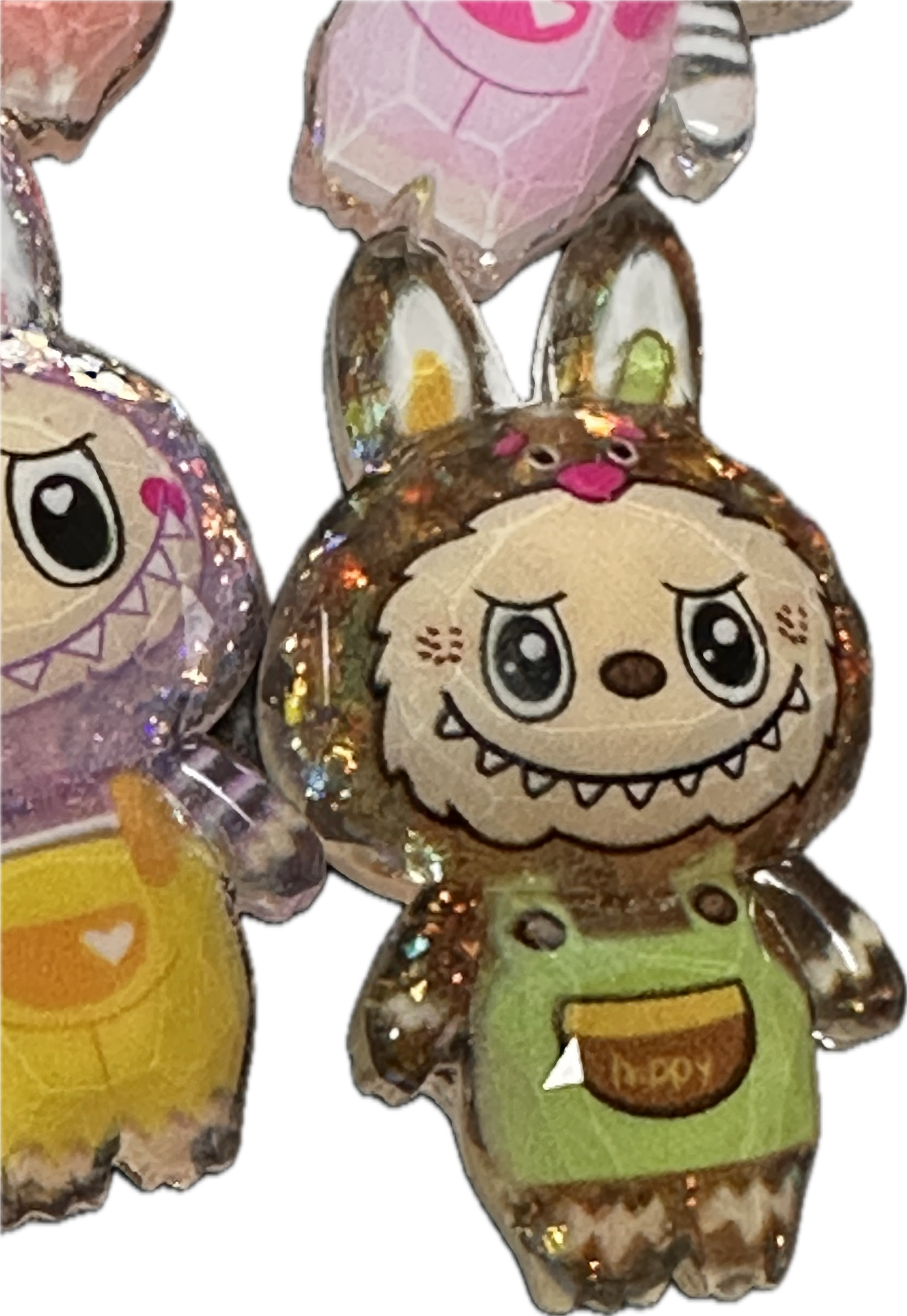 Glue On Glitter Labubu Charms – Flat Back Embellishments for DIY Crafts- Set of 5 different designs
