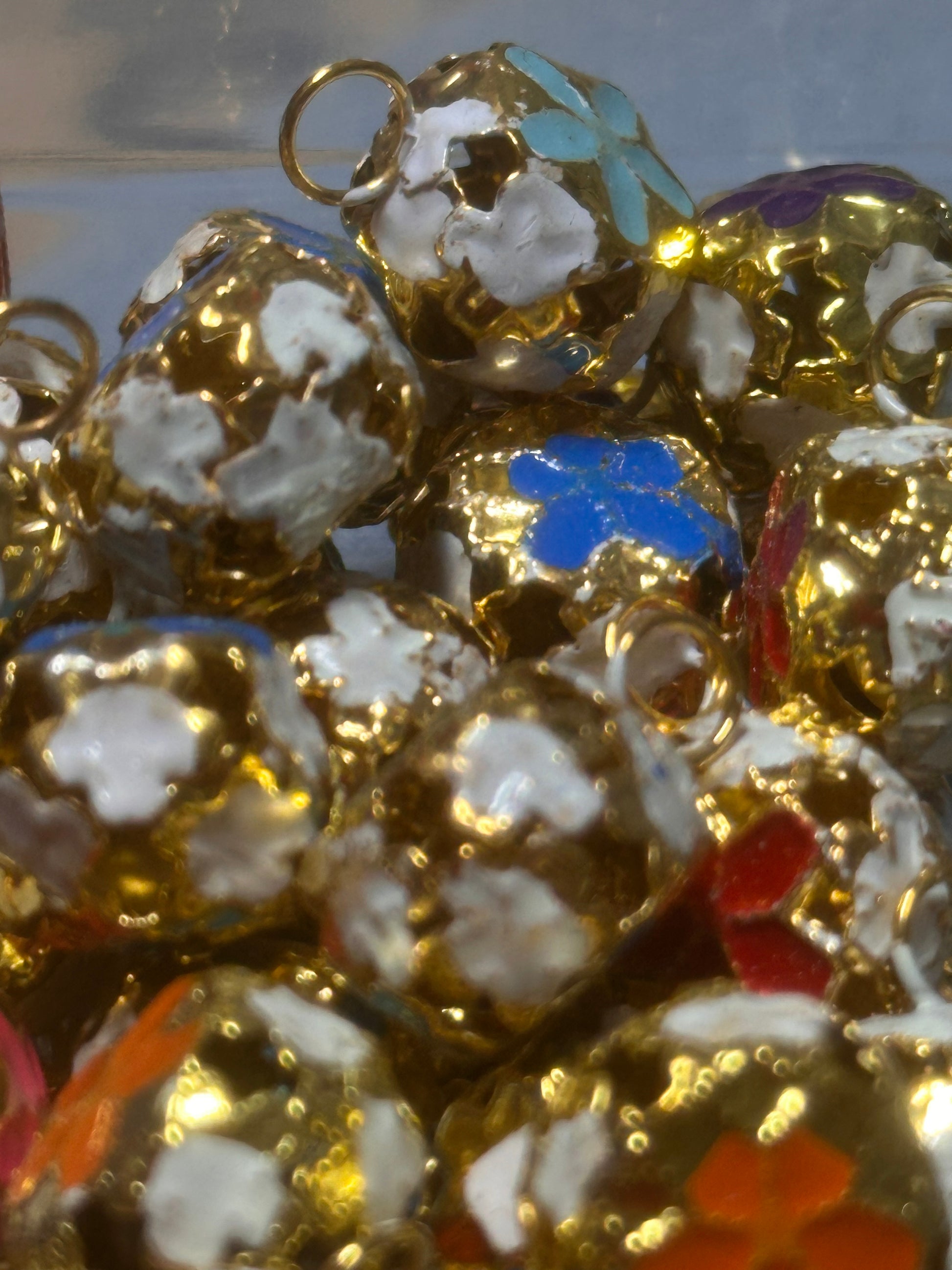 Jingle bell metal pendants/ hand painted flowers on them/ 16mm approx.
