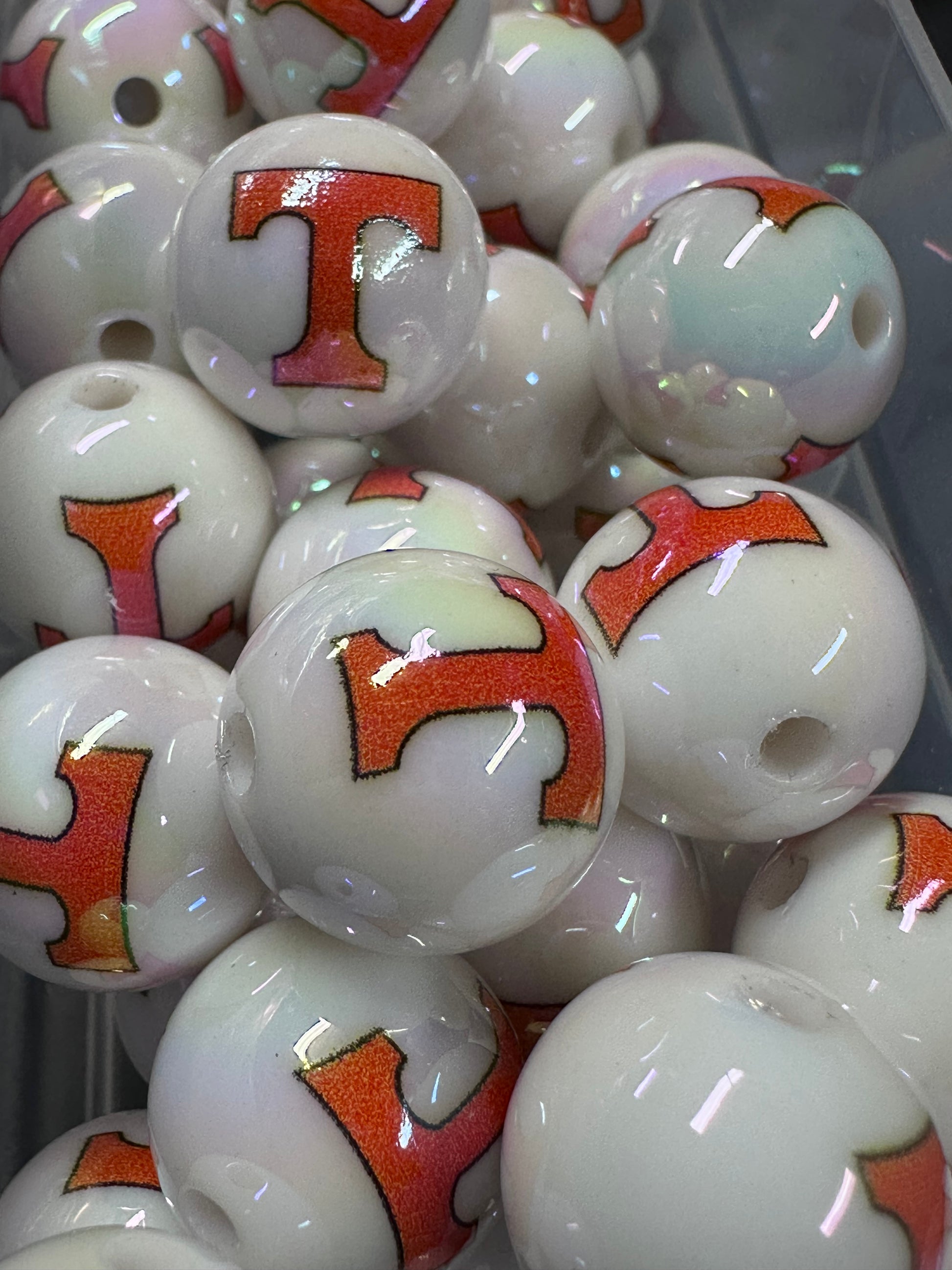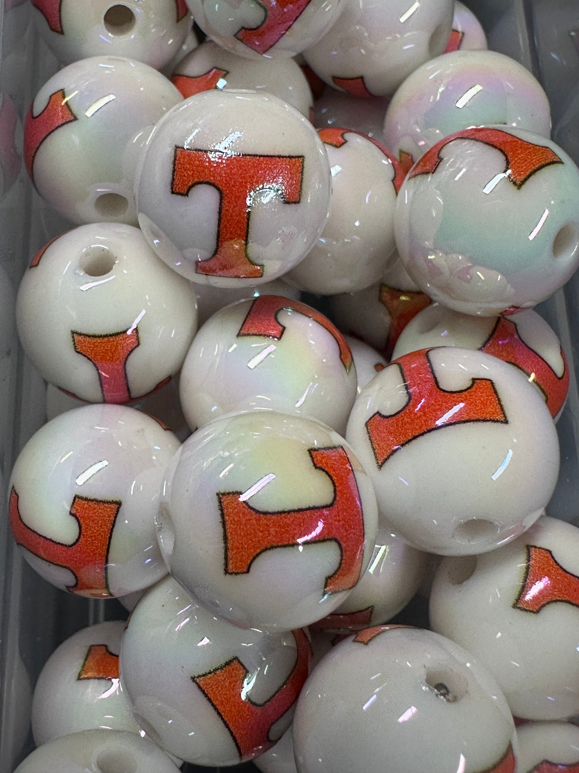 University of Tennessee 16mm Sports Print Beads • Set of 10 • Great for Pens, Keychains & Crafts-