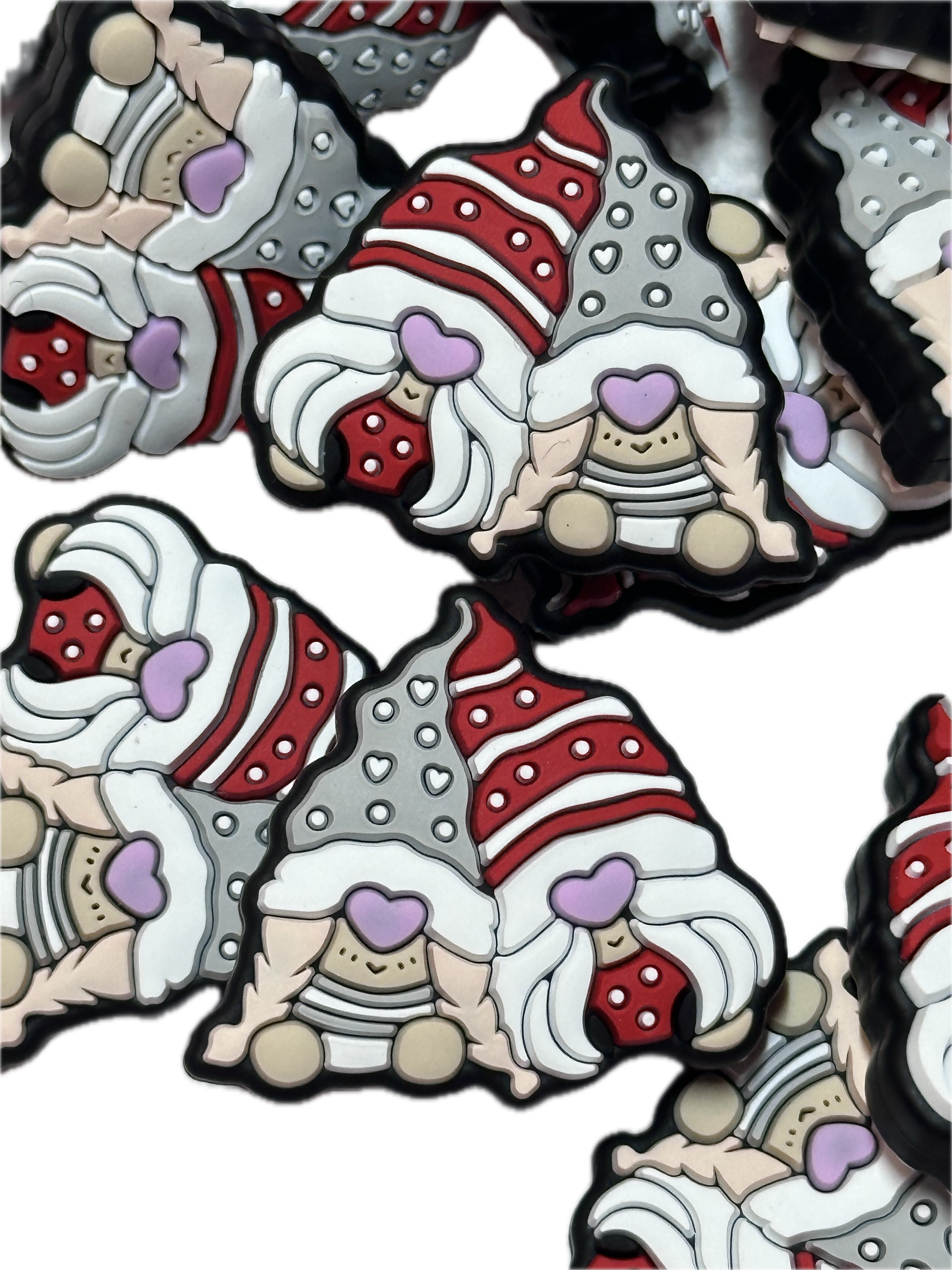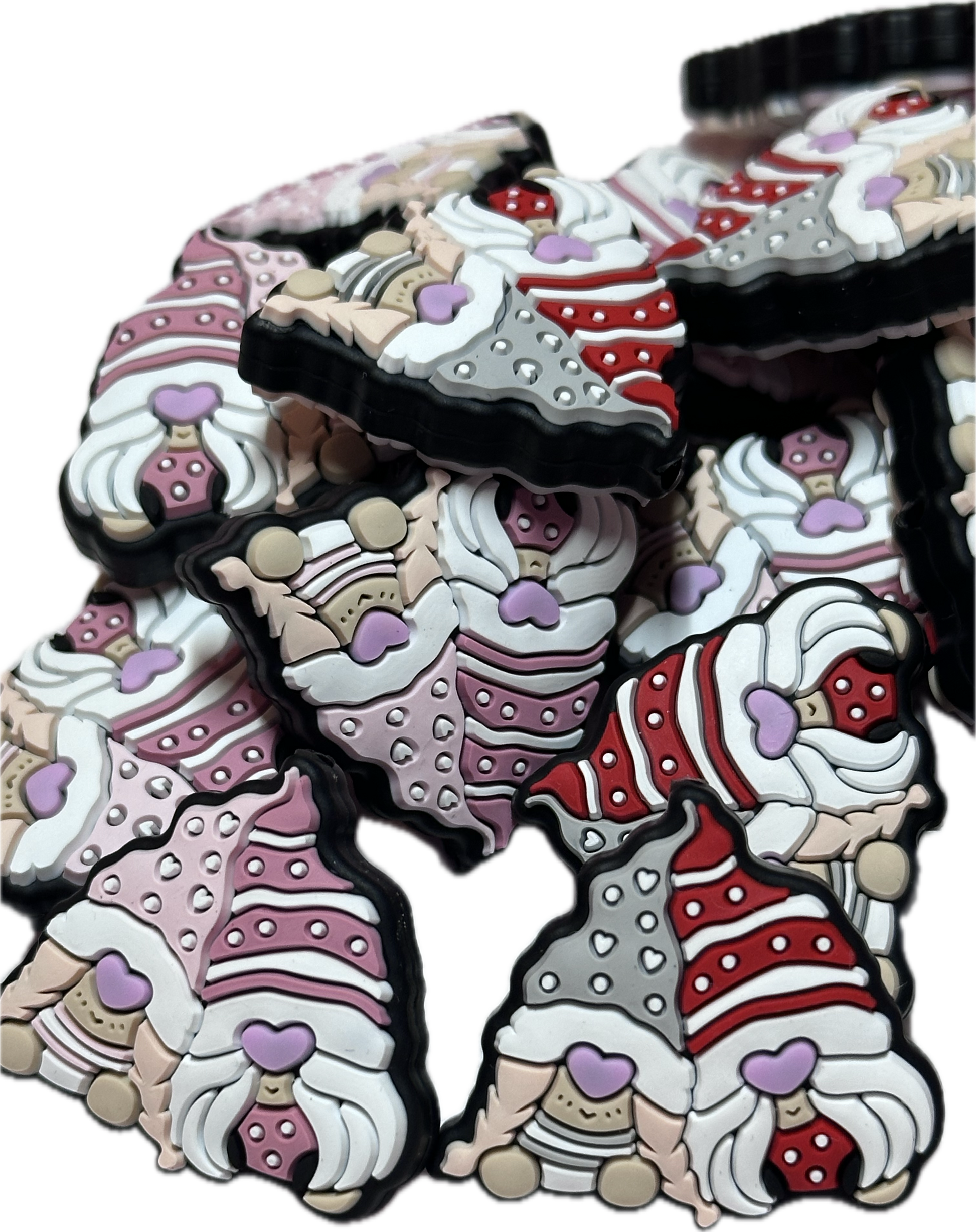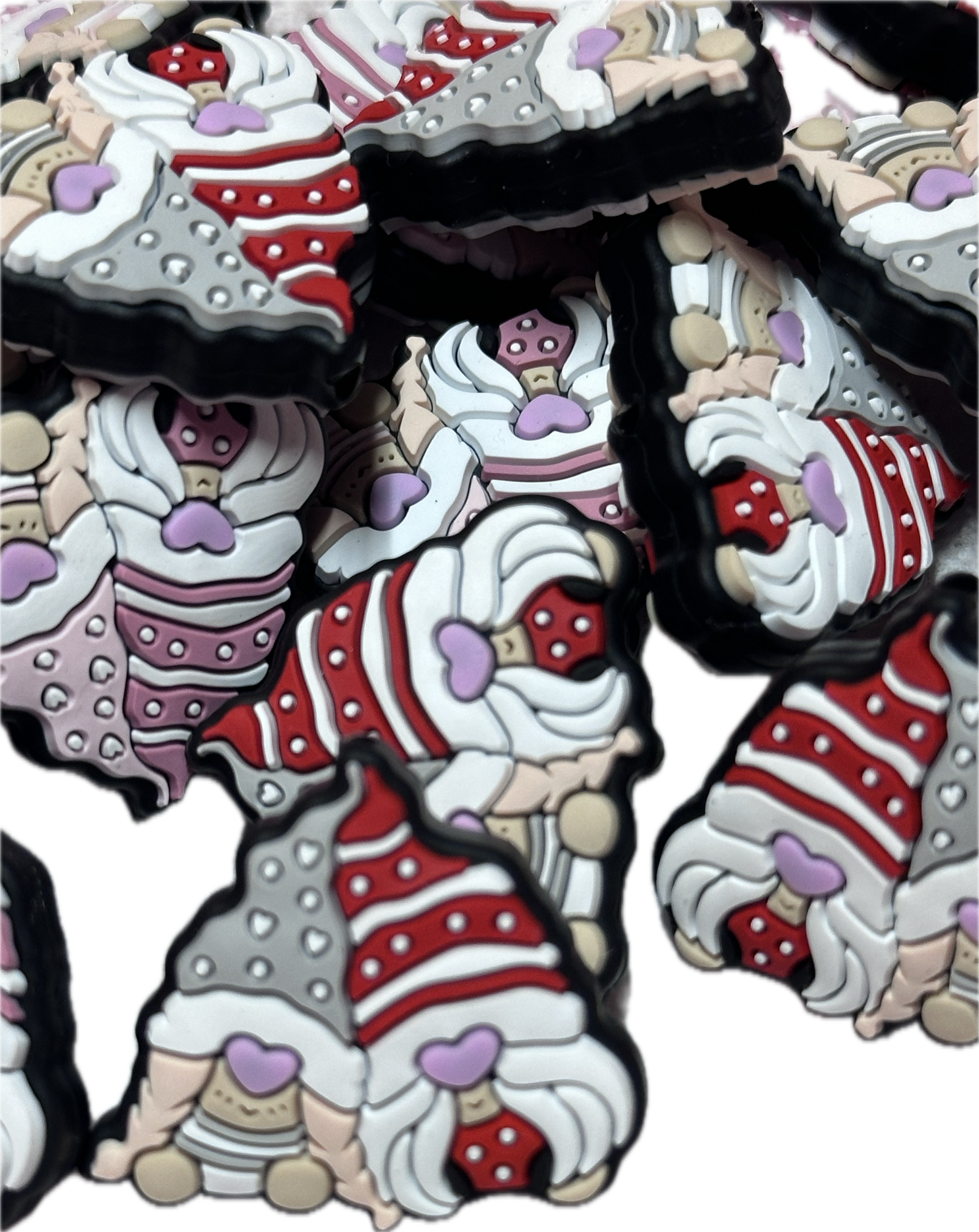 Cute gnome focal bead/ silicone/heart/ Valentines Day/Choose red or pink